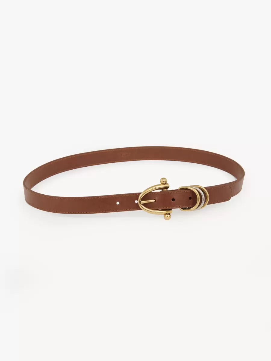 Chloé Bracelet belt in soft calfskin featuring striking brass hardware in gold and silver tones, anchored in the Maison’s DNA. The buckle is linked to the Paraty 24 bag, while the cluster of three rings nods to the iconic Bracelet bag. A Chloé logo engraving signs this piece.