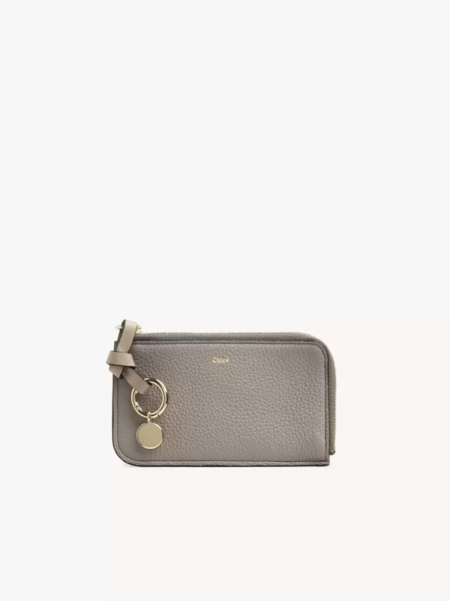 Grained calfskin provides elegant texture, while a gold metal loop attached to the knotted leather link brings striking hardware. Add your initial charm to this small coin wallet for decorative, personalized detail.