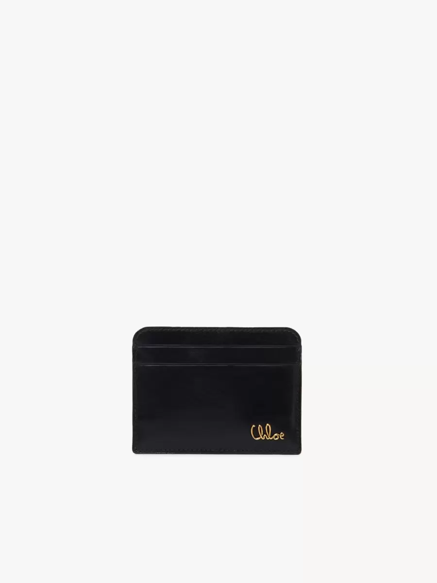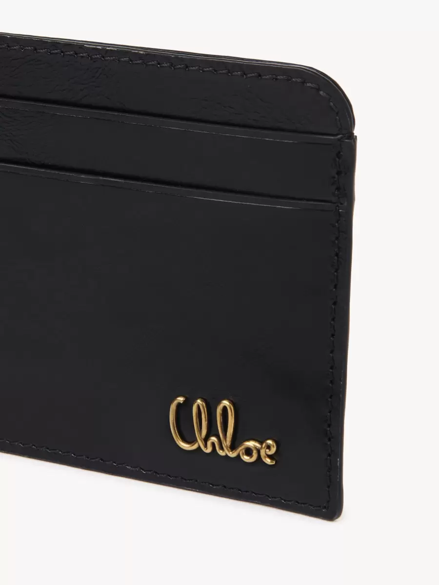 Crafted from shiny calfskin, the Chloé Iconic card holder combines a minimalist design with a metallic signature from the Maison’s archives.