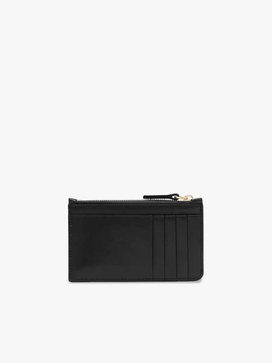 Sized to fit the essentials, this small purse features a zipped compartment and four card slots on the back.