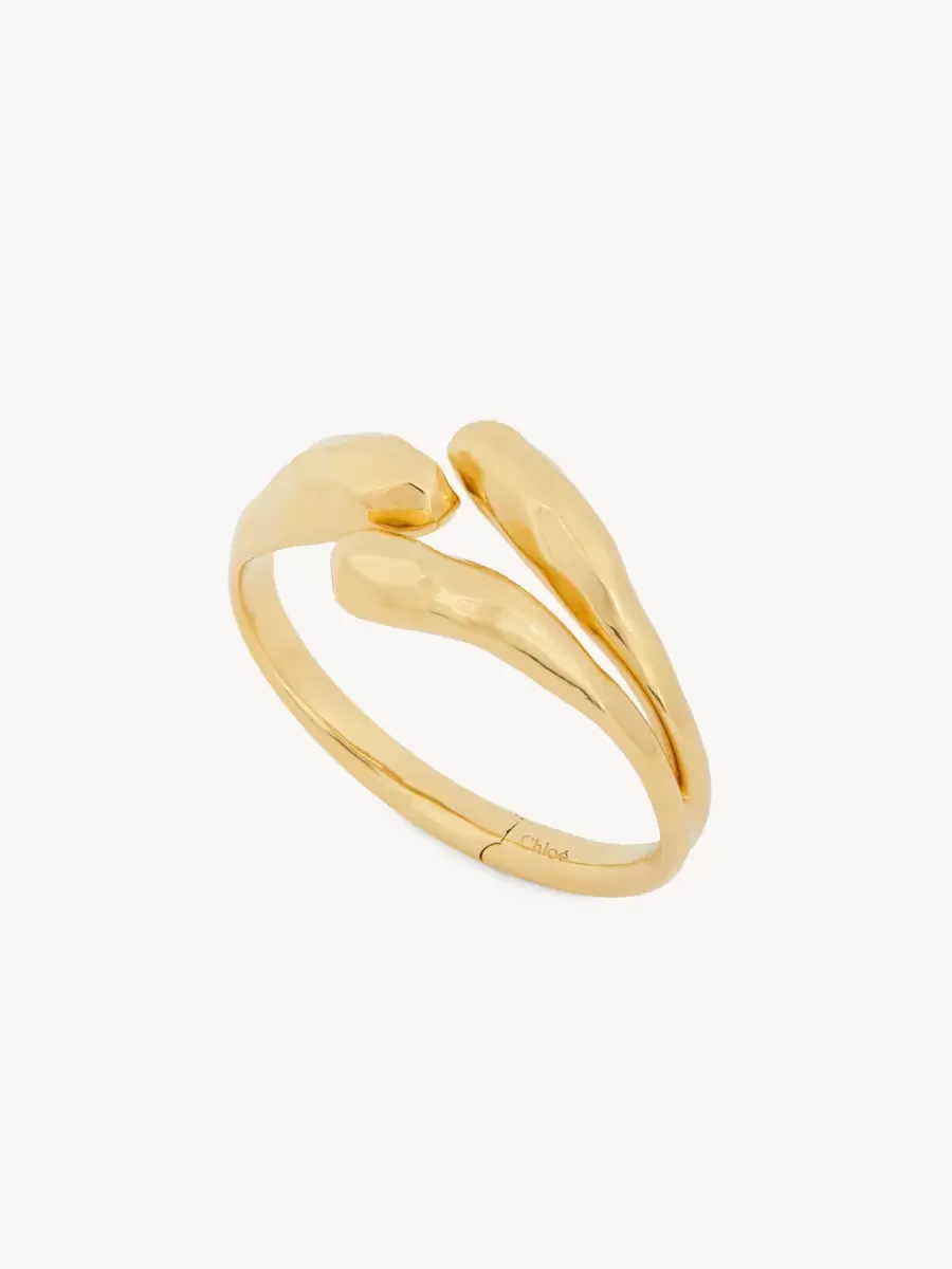Chloé Curl Toi et Moi bracelet in vintage gold brass, featuring smooth and hammered textures for a hand-made feel. A Chloé logo engraving signs this piece.