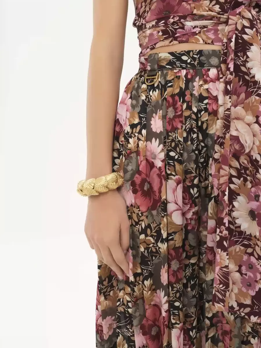 Chloé Shells cuff in vintage gold brass, depicting a set of textured ginkgo leaves stacked together. A Chloé logo engraving finishes this piece.