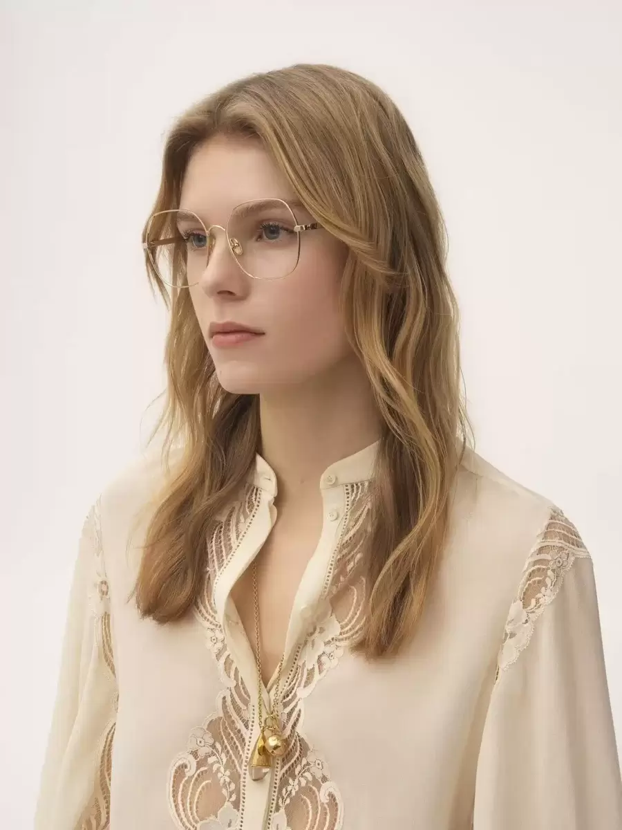 The Chloé logo details the temples while drop-shaped openings at the temple tips make these eyeglasses compatible with Chloé’s eyewear jewelry.