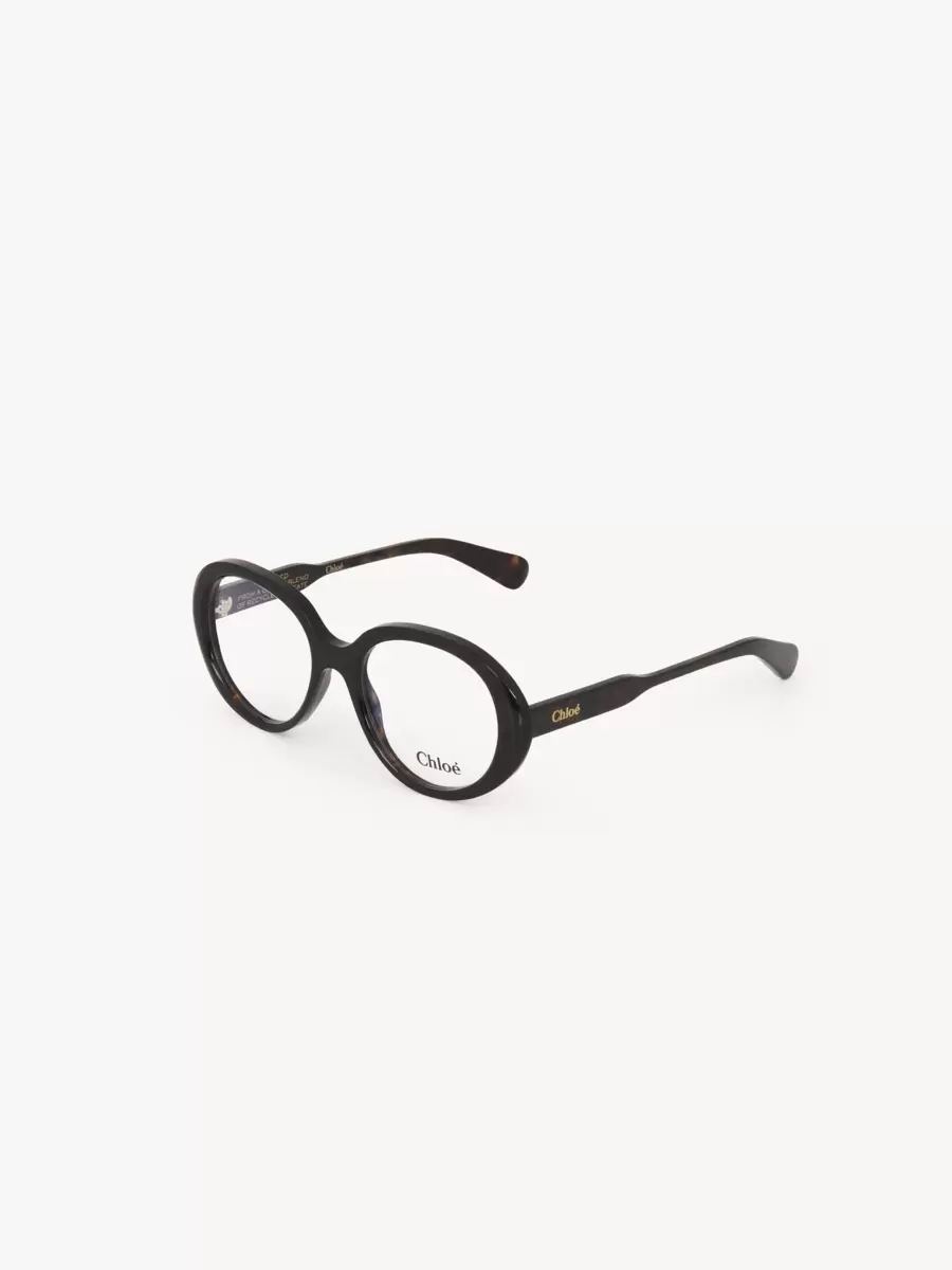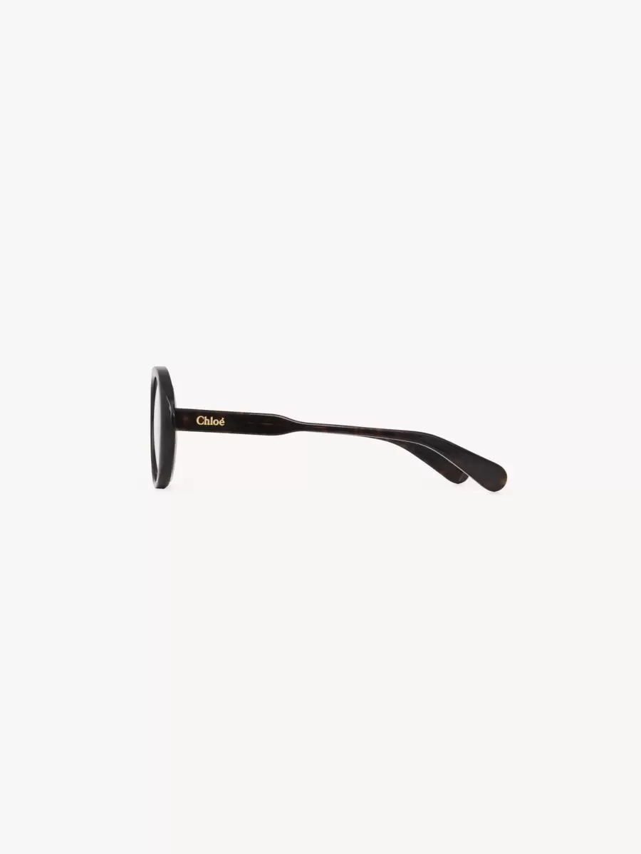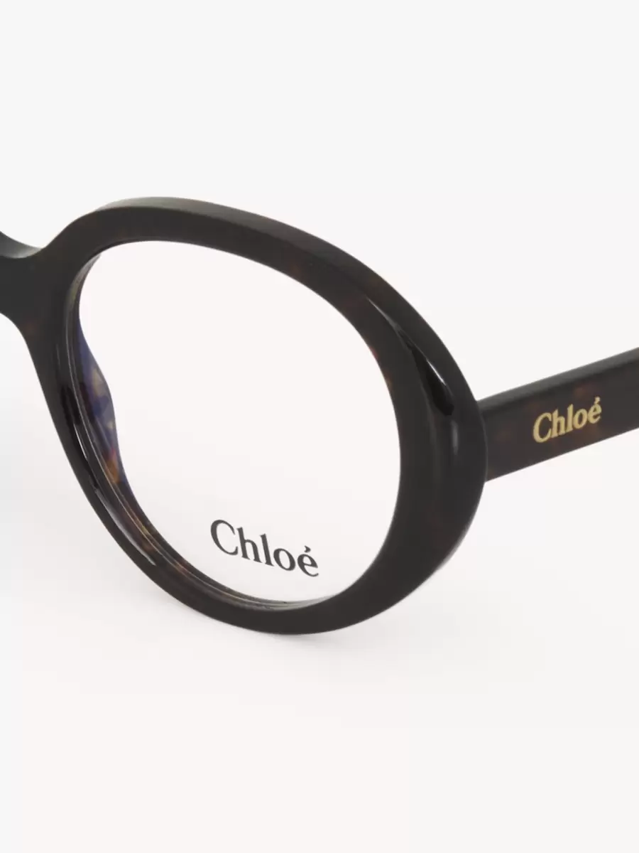 The timeless Havana frame features a gold-toned Chloé logo engraving for a signature finish. An engraved text on the inside of the right temple indicates the model’s unique composition.
