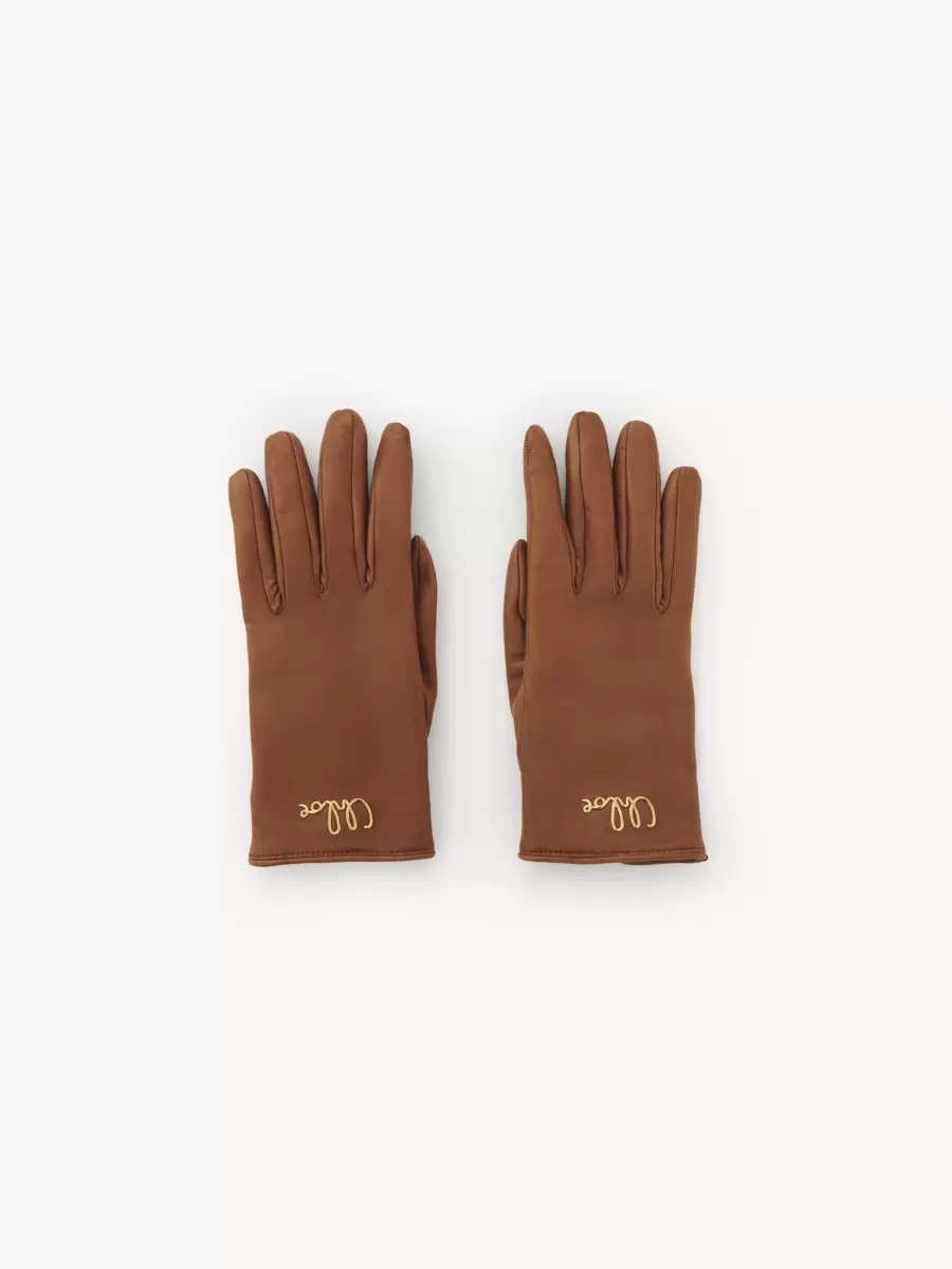 Chloé Iconic gloves in soft lambskin lined with wool. Inspired by a design rooted in the Maison’s heritage, the gold brass Chloé logo adds refined hardware and a signature finish.