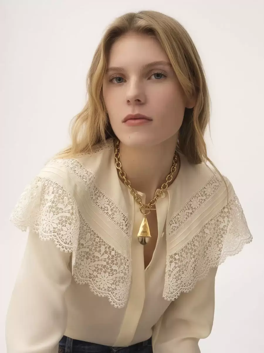 Chloé Prism necklace combining a chunky gold brass chain with a bi-material, faceted pendant detailed with clear resin. A T-bar link and Chloé logo engraving finish this piece.
