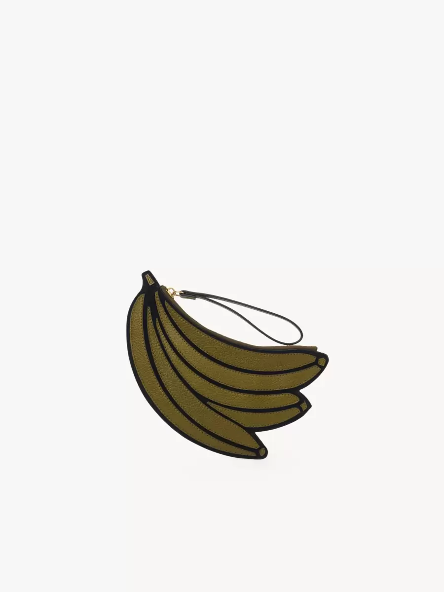 Crafted from shiny grained calfskin, this Banana flat pouch reveals a playful textured design inspired by the Maison’s Spring 2001 collection.