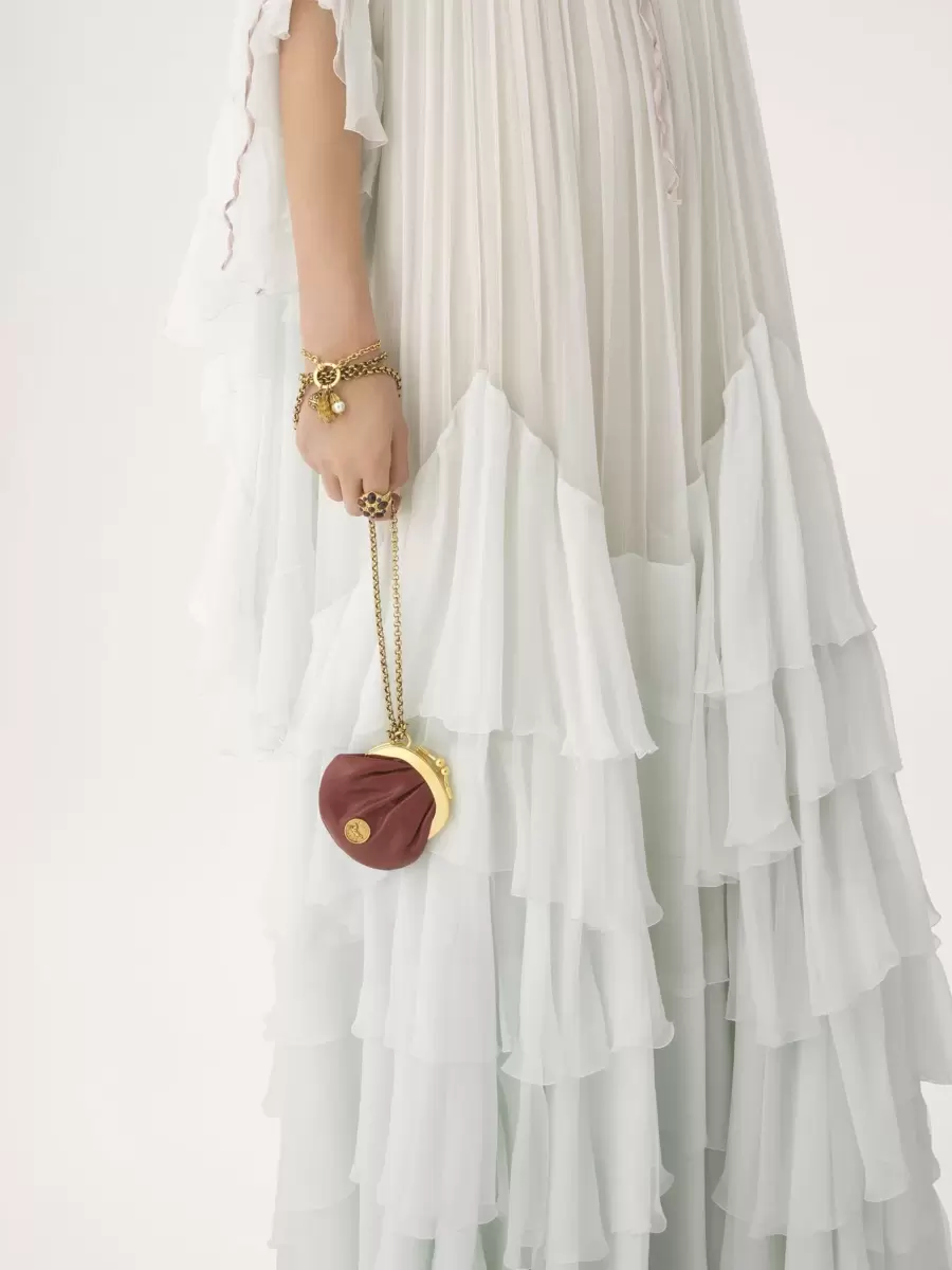 This micro Horse Medal coin purse is crafted from grained buffalo leather, pairing a gold-tone clasp with a removable necklace chain strap. The front is embellished with the Maison’s iconic medal featuring an embossed image of a galloping horse and a Chloé Paris logo engraving.