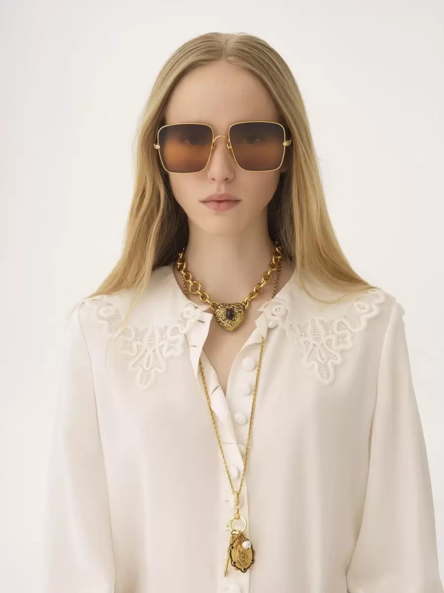 Drop-shaped openings at the temple tips make these sunglasses compatible with Chloé’s eyewear jewelry.