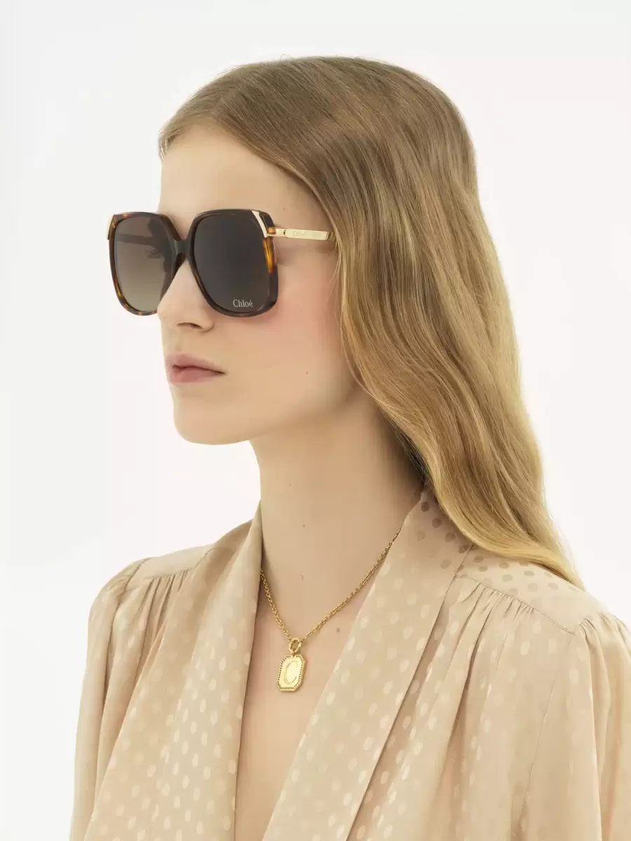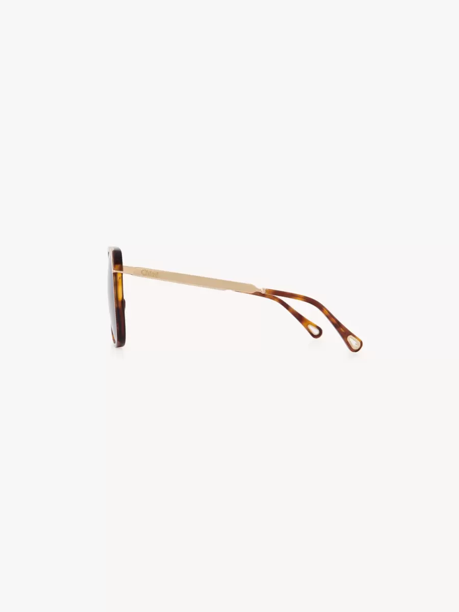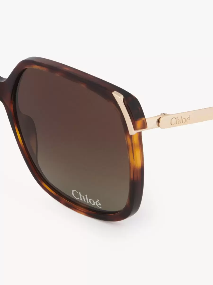 These Aly square sunglasses have a 70s-style frame in a mix of Havana lower-impact acetate and shiny gold metal. The double gradient brown lenses are signed with the Chloé logo.