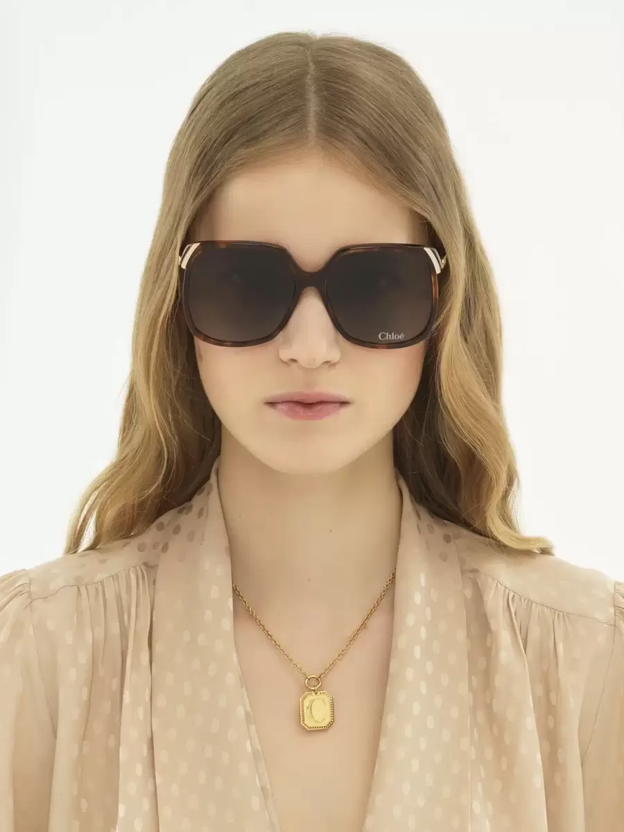 Drop-shaped openings at the temple tips make these sunglasses compatible with Chloé’s eyewear jewelry.