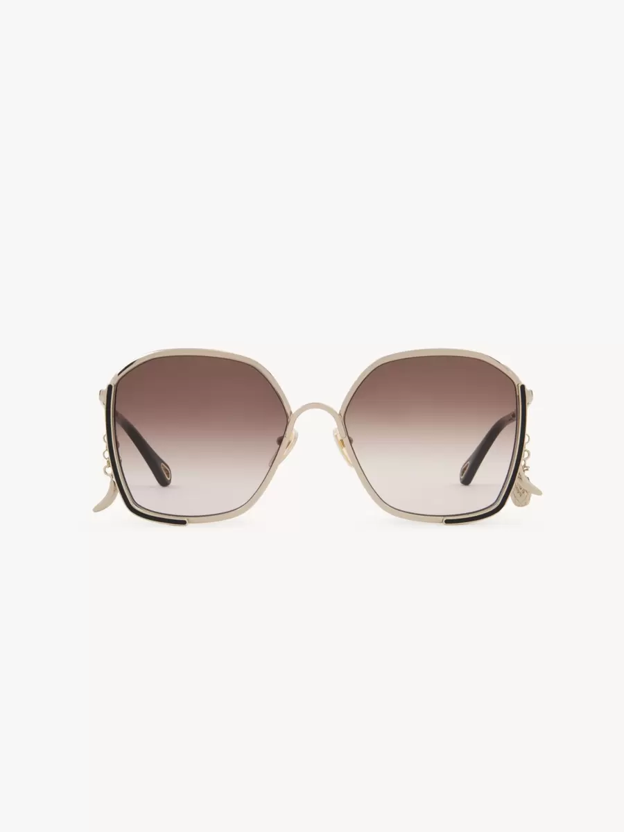 Drop-shaped openings at the temple tips make these sunglasses compatible with Chloé’s eyewear jewelry.