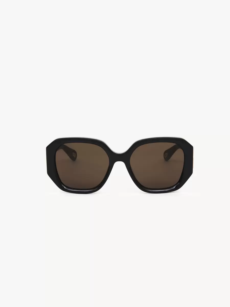 Exuding contemporary sophistication, these Marcie square sunglasses are a new update to the iconic Chloé line. The oversized beveled frame in lower-impact acetate makes a bold statement, elevated with Marcie’s signature gold metal piece at the hinges.