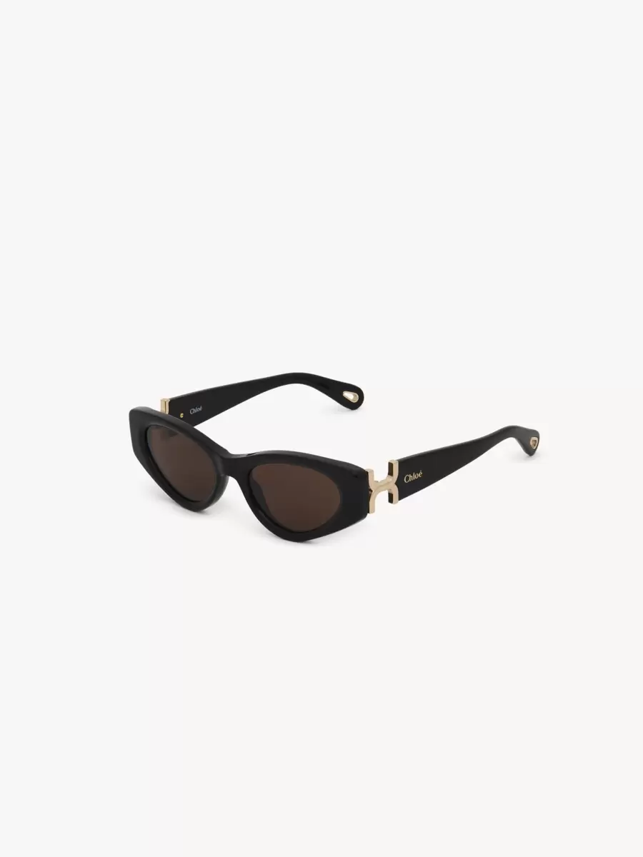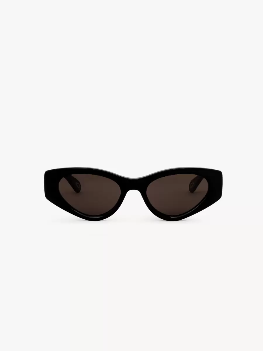 Made from lower-impact acetate, the glossy black frame is combined with solid brown lenses in bio-based nylon. The Chloé logo details the left temple, while drop-shaped openings at the temple tips make these women’s sunglasses compatible with Chloé’s eyewear jewelry.