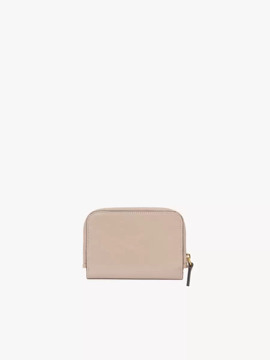 This Chloé wallet is made from natural leather with a very light finish. Keep away from water (rain). The wallet may develop smooth or light halos. If the leather gets wet, dry it with a soft white cloth to absorb water. With use, the leather may become marked.