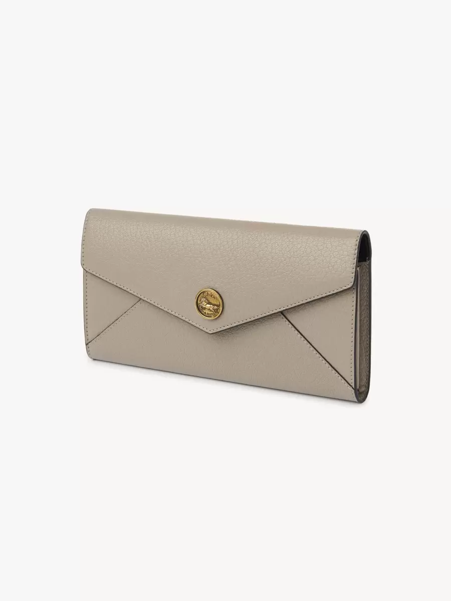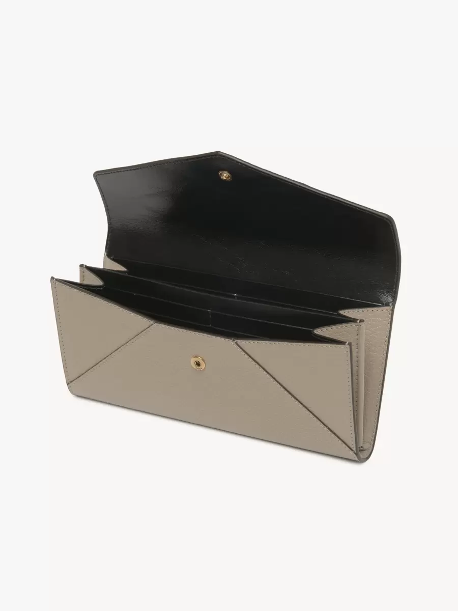 Crafted from grained goatskin, this Envelope long wallet with flap features two main compartments, 12 card slots and a zipped outer pocket.