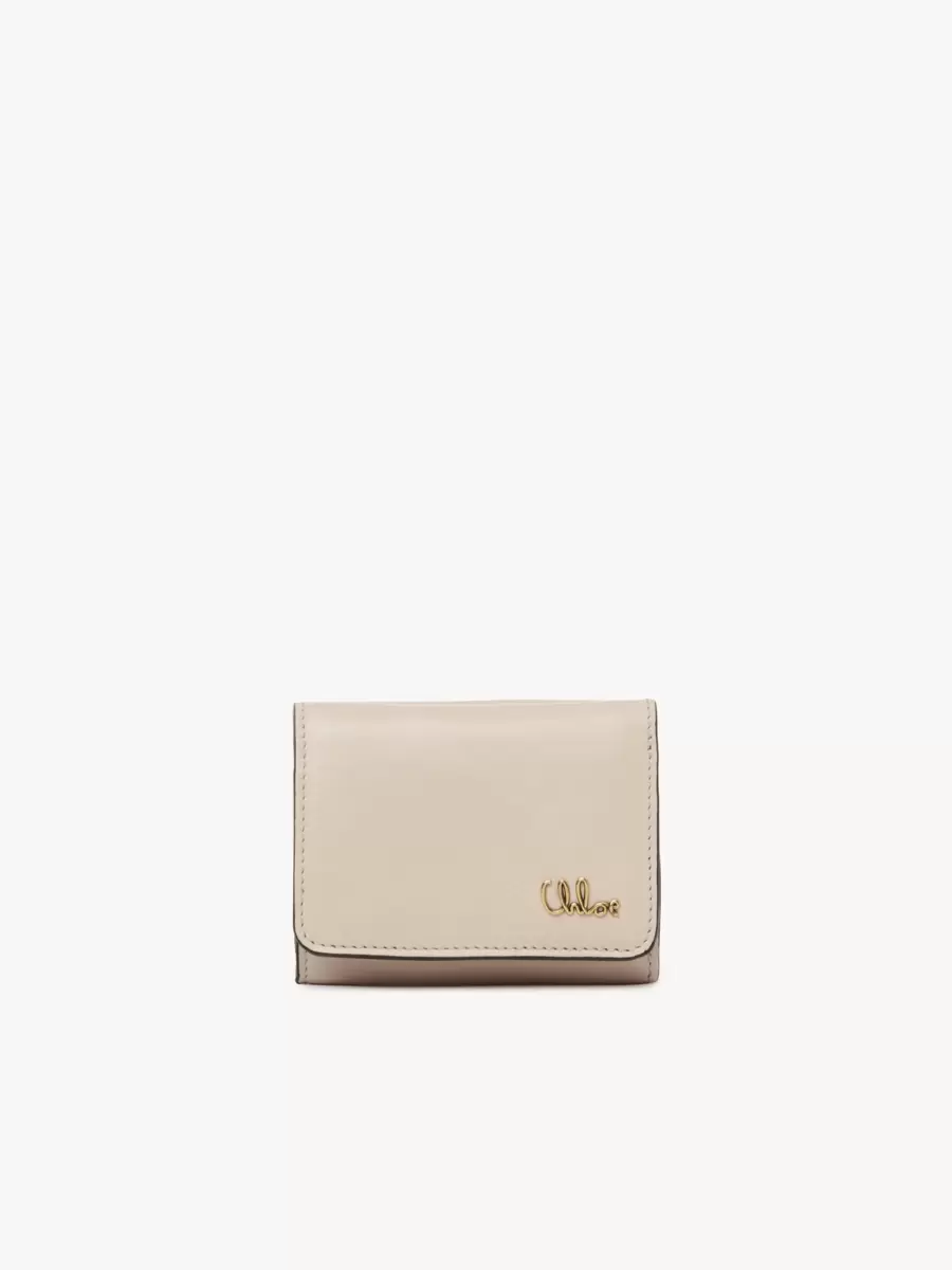 Crafted from shiny calfskin, the mini Chloé Iconic tri-fold wallet combines a minimalist design with a metallic signature from the Maison’s archives.