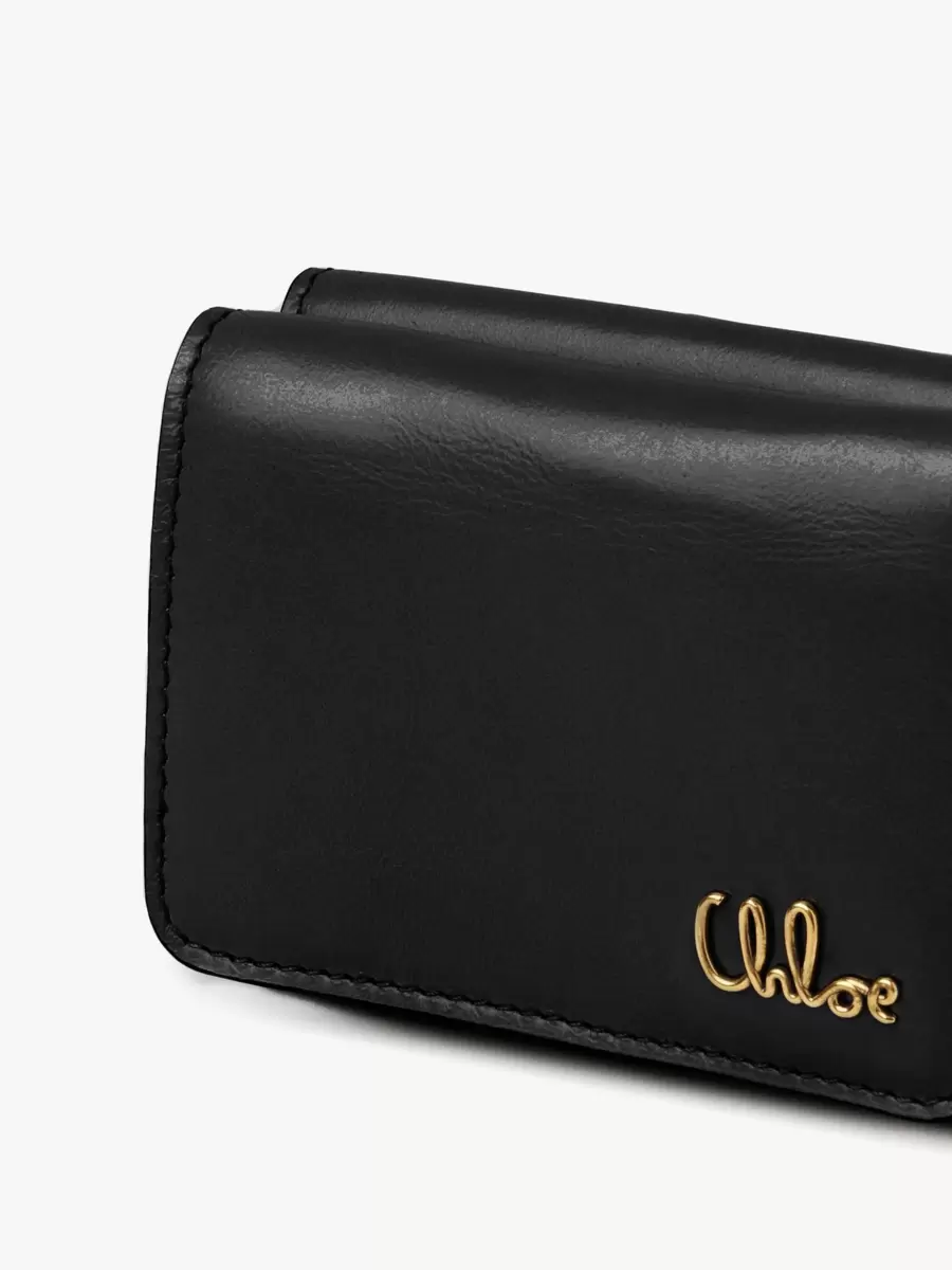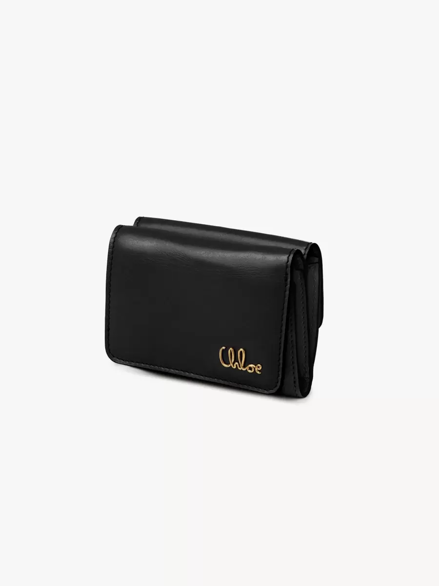 Crafted from shiny calfskin, the mini Chloé Iconic tri-fold wallet combines a minimalist design with a metallic signature from the Maison’s archives.