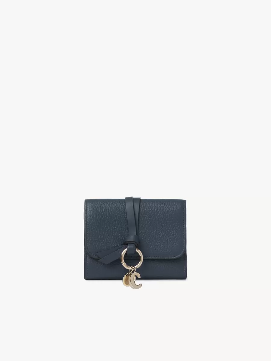 The Maison’s iconic Alphabet line includes this tri-fold wallet in grained and shiny calfskin. Designed to hold the essentials, it features multiple card slots and one flat pocket. The front is finished with a knotted link and Chloé-designed golden initial charms.