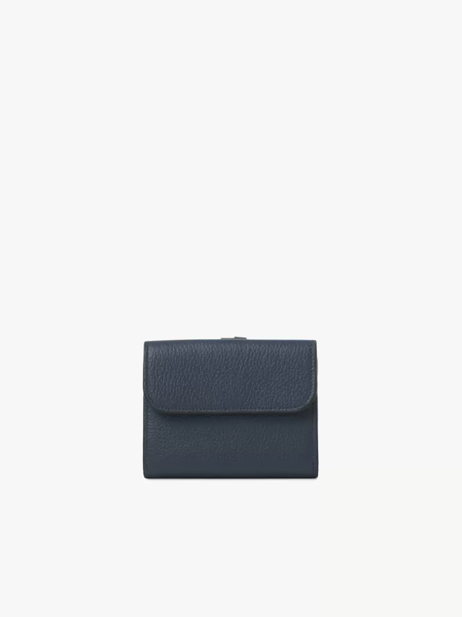 Small tri-fold wallet with leather link in grained & shiny calfskin