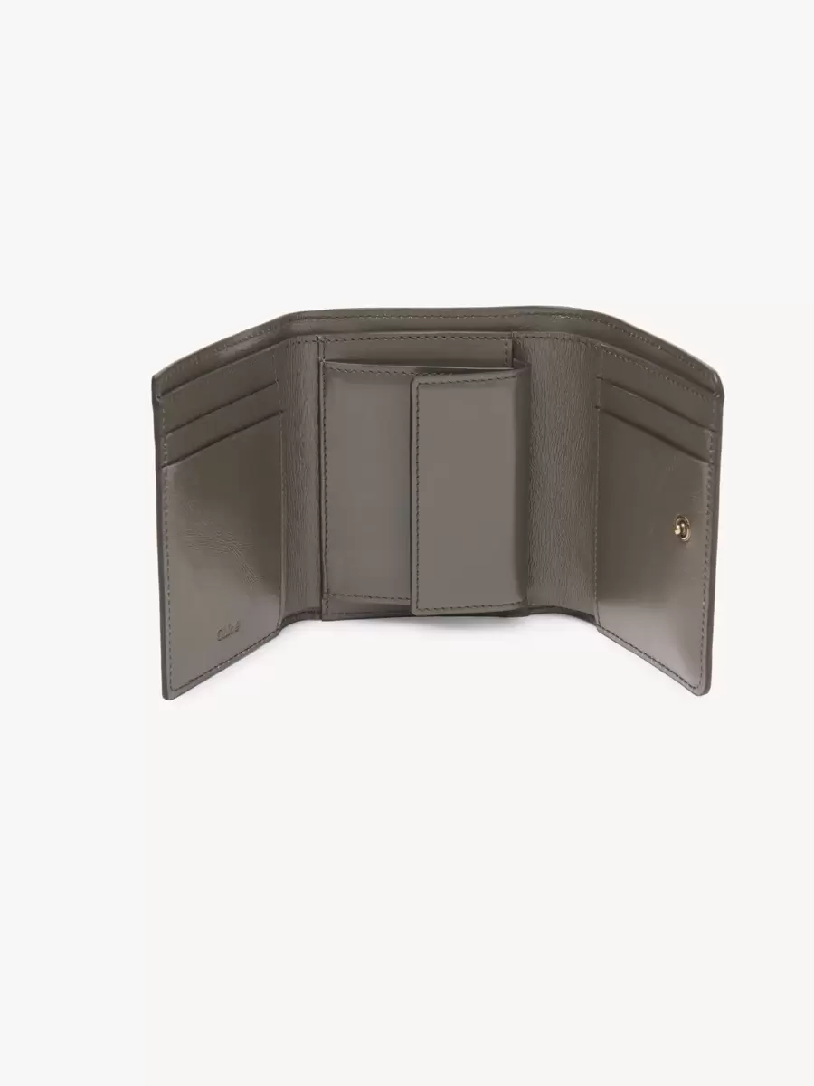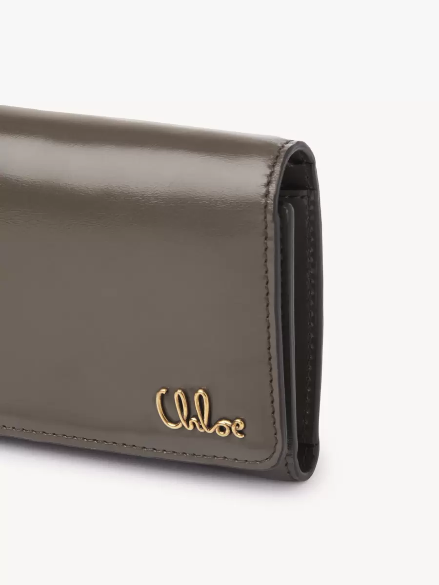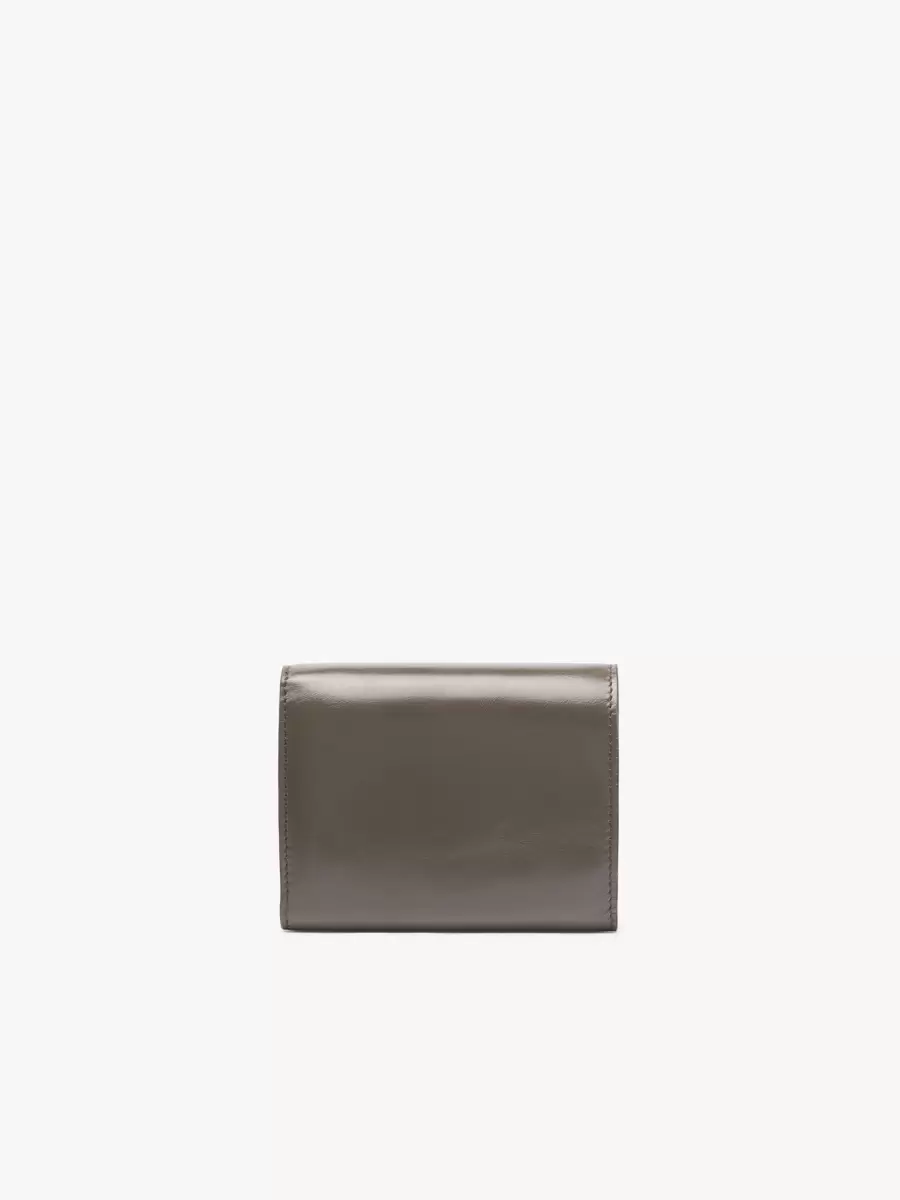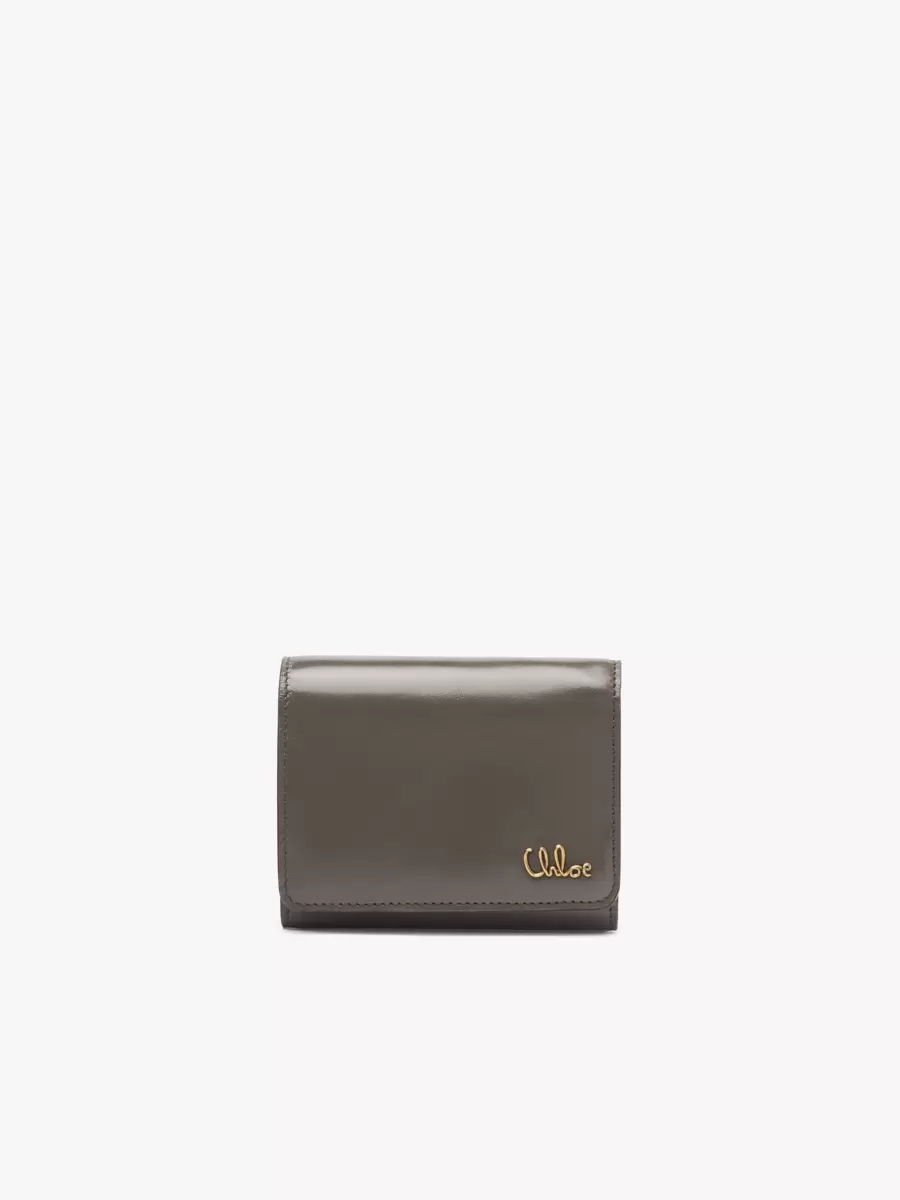 Crafted from shiny calfskin, the small Chloé Iconic tri-fold wallet combines a minimalist design with a metallic signature from the Maison’s archives.