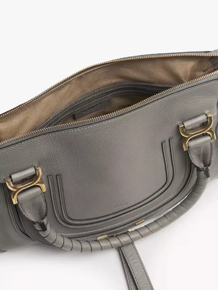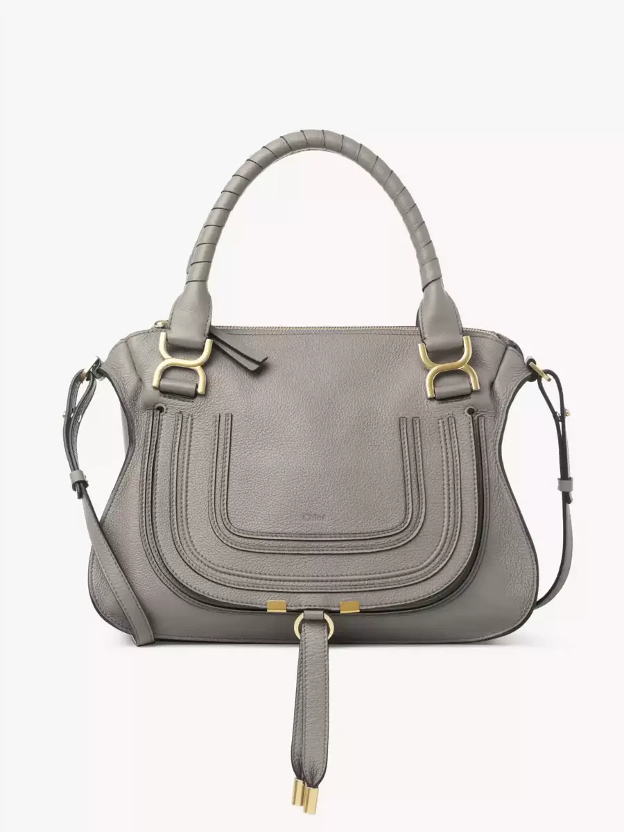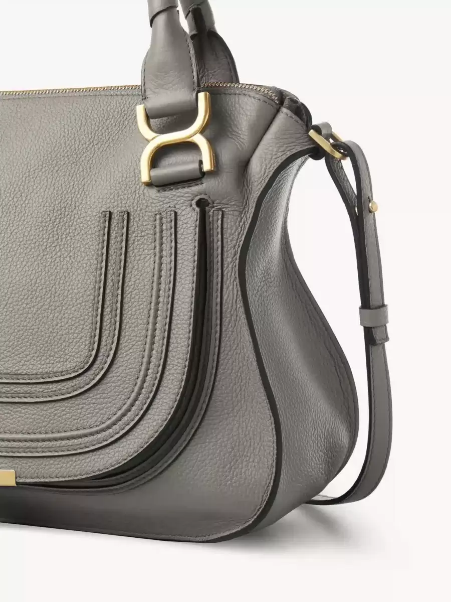 This iconic Marcie double carry bag is a roomy and practical day bag crafted from grained calfskin. Clean lines and a contoured design enhance the slouchy silhouette, while hand-wrapped leather handles add crafty detail. The detachable strap allows for casual, cross-body styling.