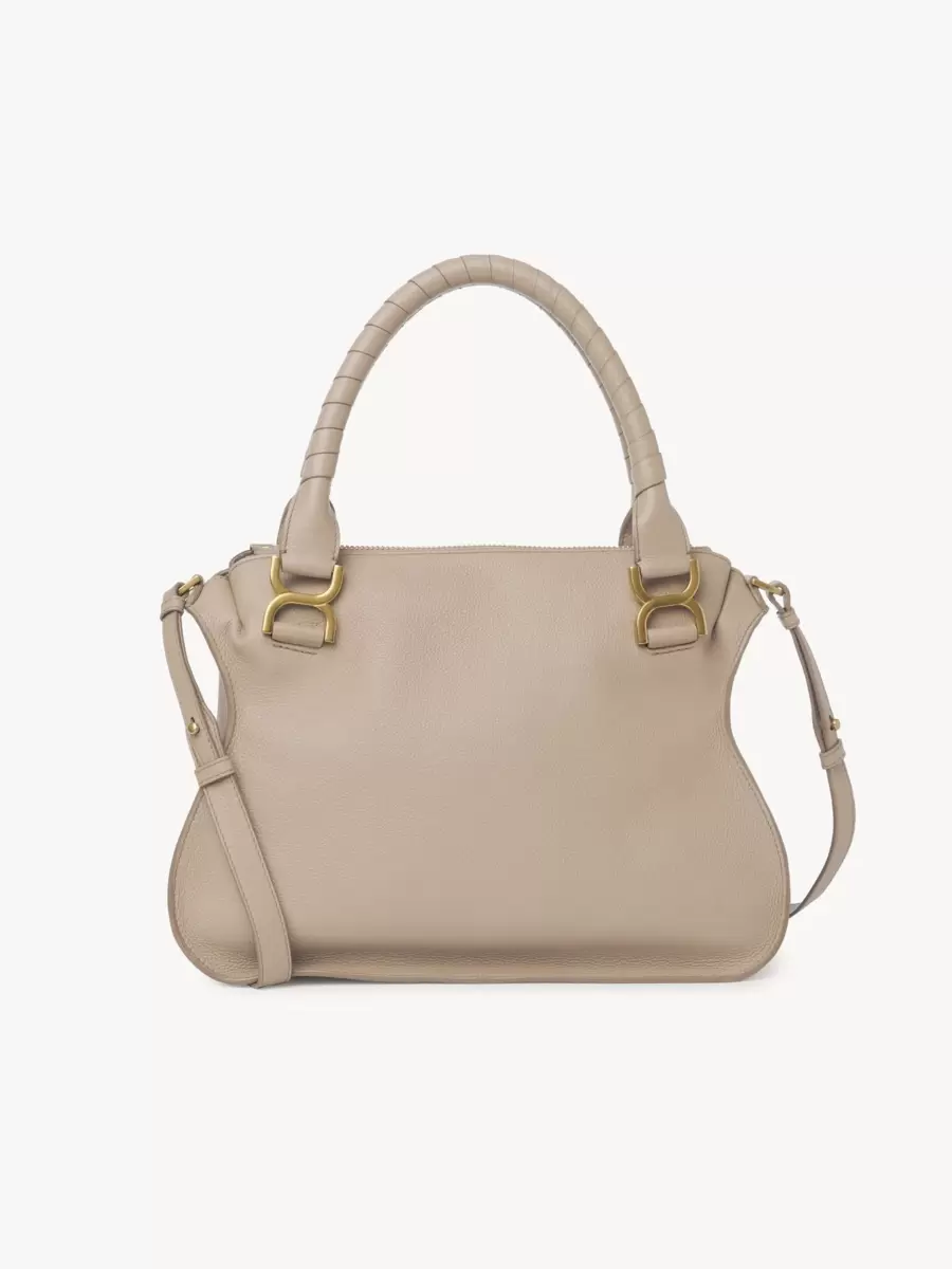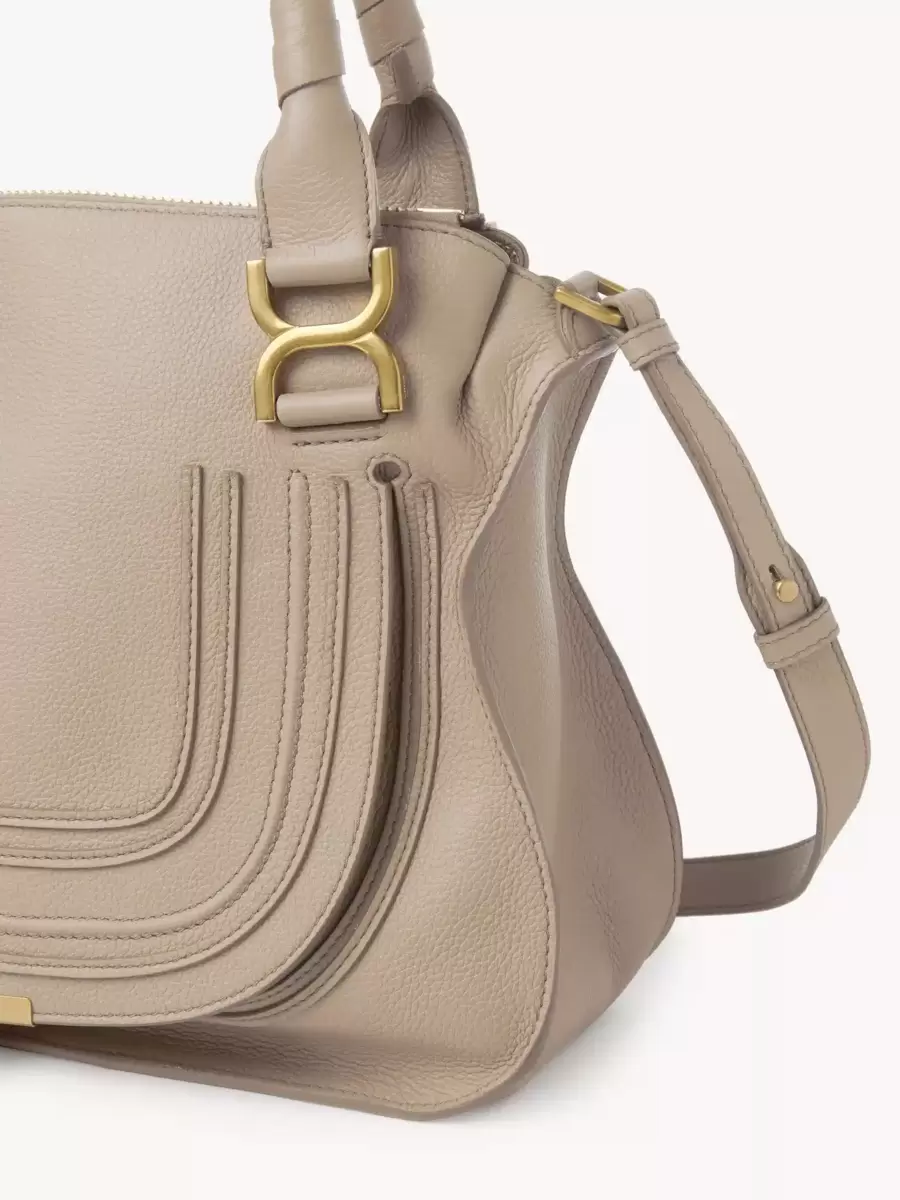Crafted from grained calfskin, this small Marcie handbag has a slouchy silhouette with feminine lines. It is finished with saddle stitching, iconic gold-tone buckles and hand-wrapped double handles. The line’s dangling leather tassels secure the flap.