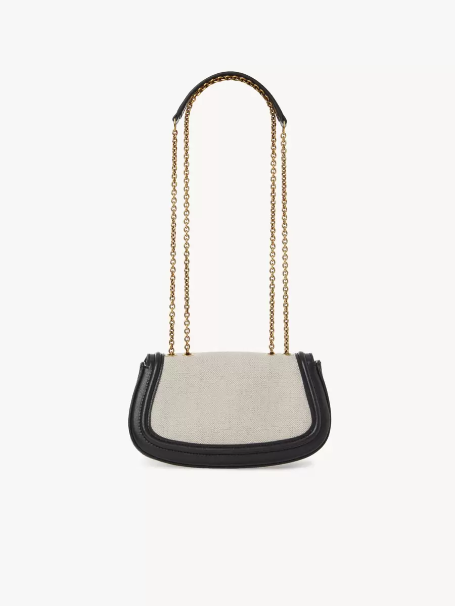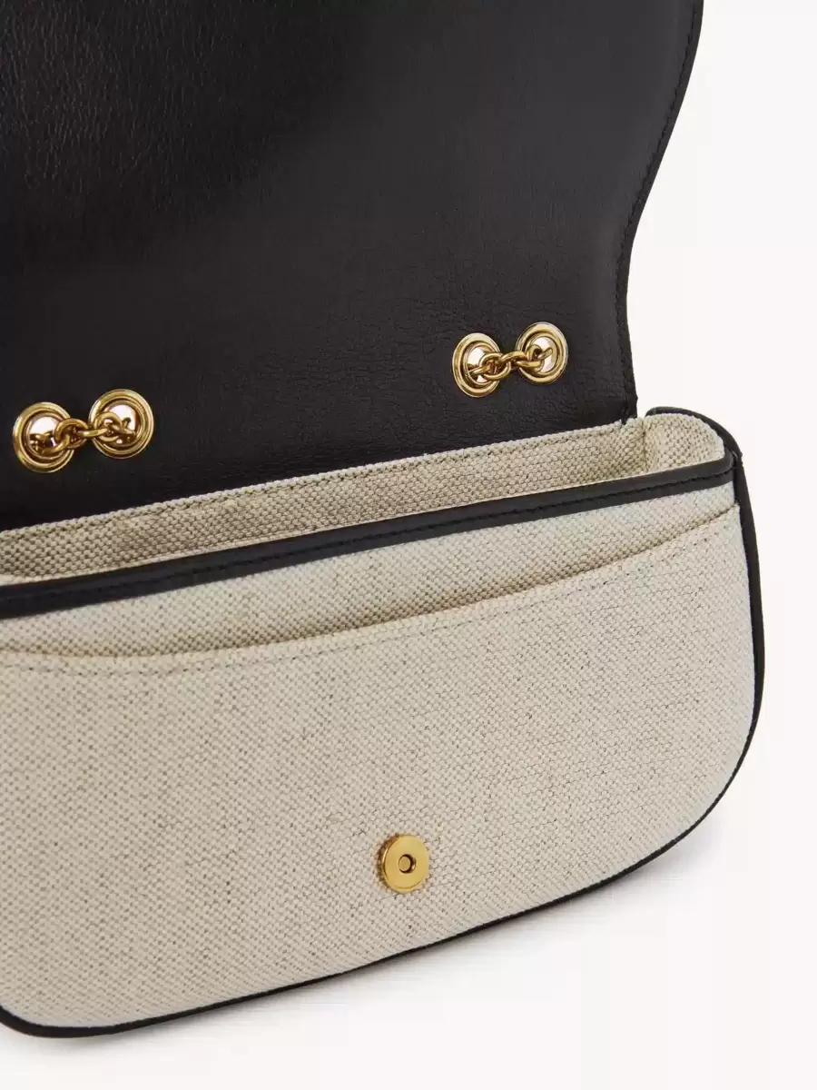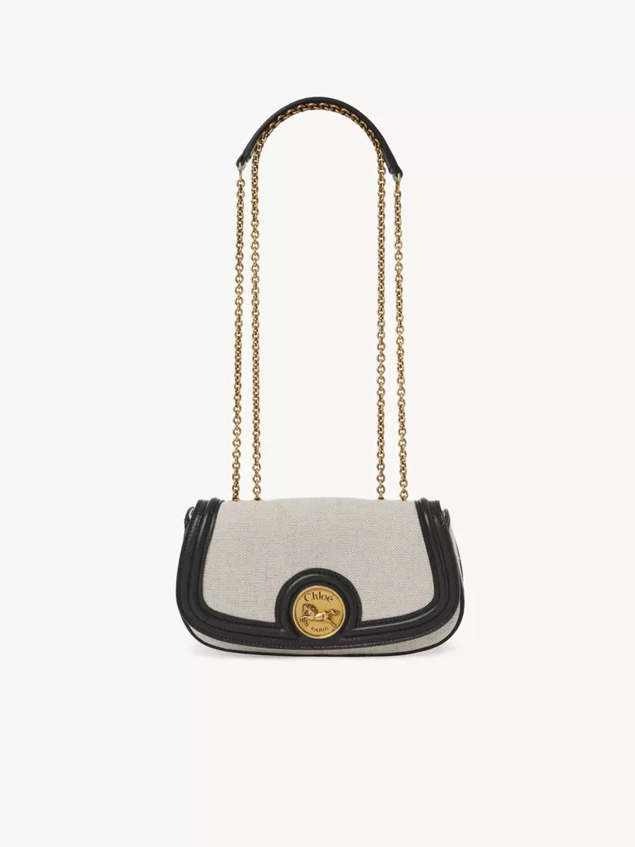 This Horse Medal crossbody bag is crafted from a mix of cotton canvas and grained buffalo leather. The rounded silhouette pairs graphic lines with the Maison’s iconic gold-tone medal featuring an embossed image of a galloping horse and a Chloé Paris logo engraving.