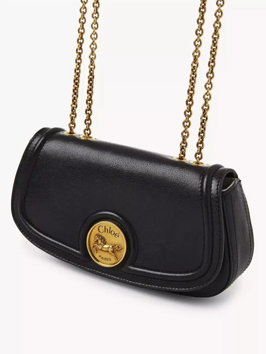 This Horse Medal crossbody bag is crafted from grained buffalo leather. The rounded silhouette pairs graphic lines with the Maison’s iconic gold-tone medal featuring an embossed image of a galloping horse and a Chloé Paris logo engraving.