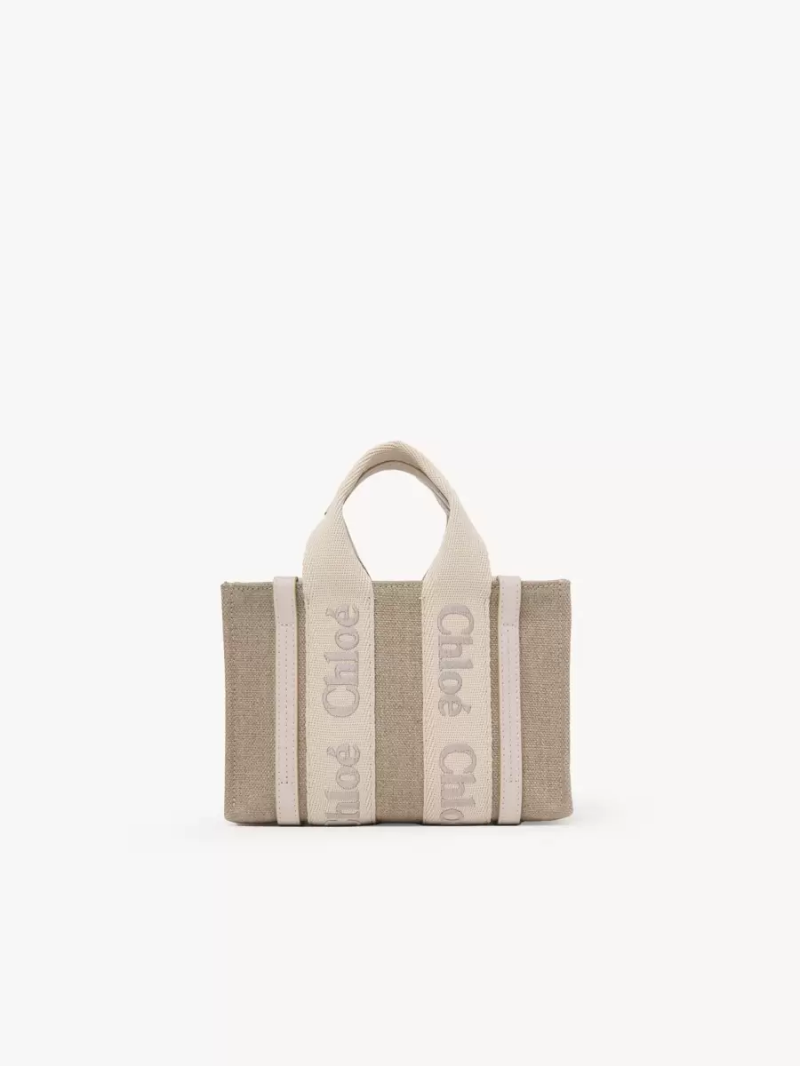 Mini tote bag in linen canvas & shiny calfskin with Chloé logo