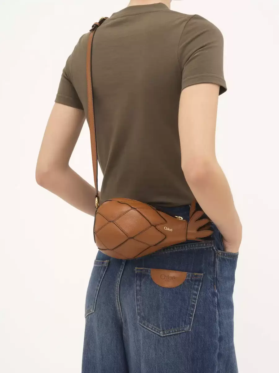Crafted from shiny grained calfskin, this Pineapple mini shoulder bag is inspired by Chloé’s Spring 2001 collection. The distinctive shape showcases the Maison’s craftsmanship, featuring a topstitched diamond motif and crown.