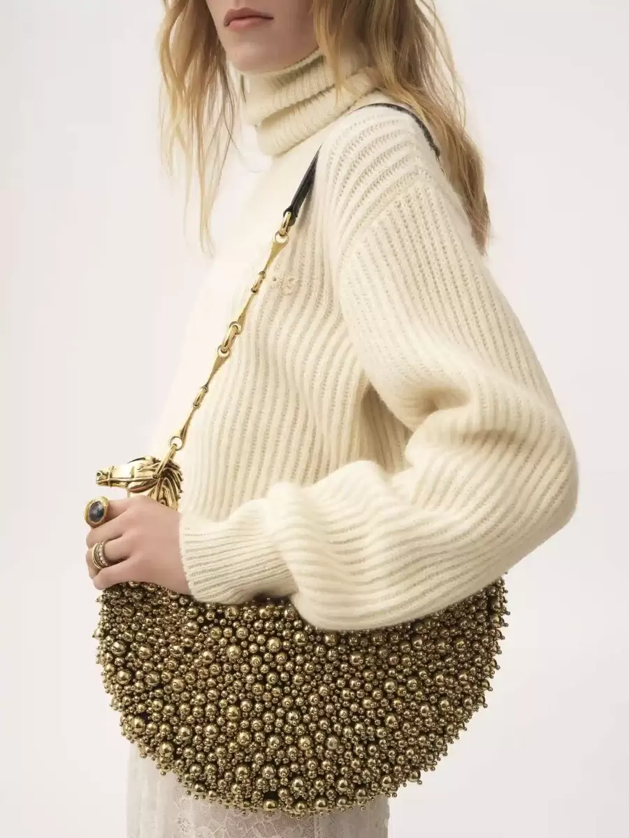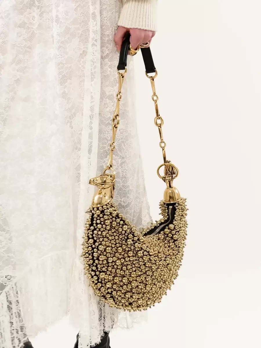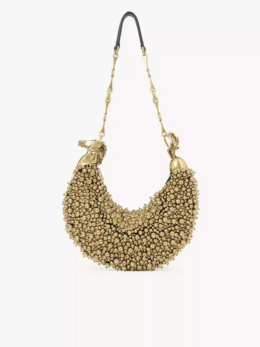 Crafted from suede goatskin and embellished with beads, this Chain Horse shoulder bag takes 1.5 weeks to complete. Inspired by the equestrian world, it combines a supple saddle silhouette with a gold-tone horse and a horsebit chain.