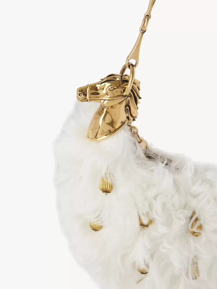 Chain Horse shoulder bag in shearling with metal ornaments