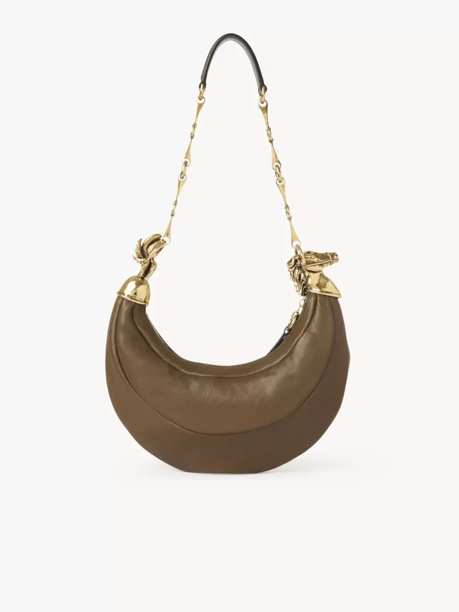 Crafted from shiny grained calfskin, the Chain Horse shoulder bag has a supple saddle silhouette. Inspired by the equestrian world, it features jewelry embellishment with a gold-tone horse and a horsebit chain.
