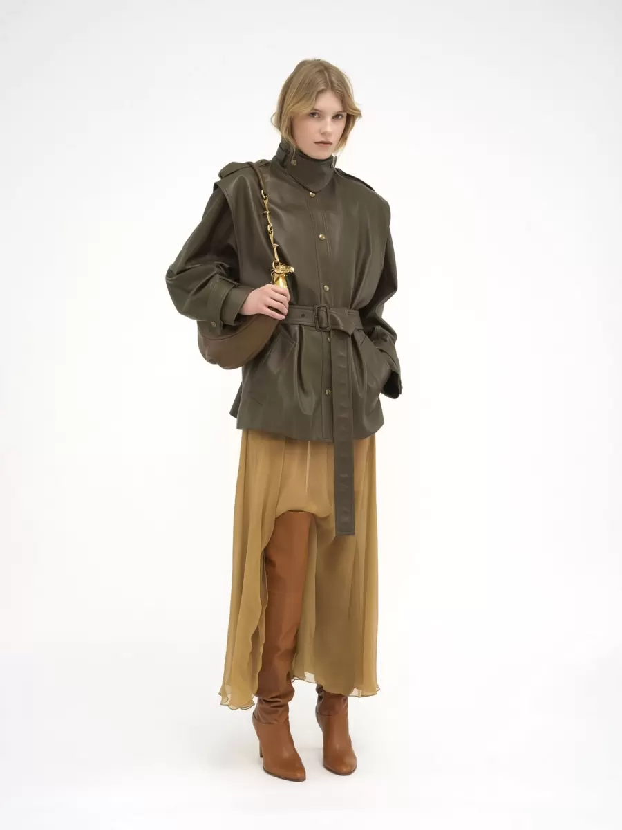 This handbag is made from pure aniline leather. Tanning imparts a specific character to the skin, such as hues and wrinkles, combined with a light and transparent aniline finish. Respect the care instructions on the leaflet.