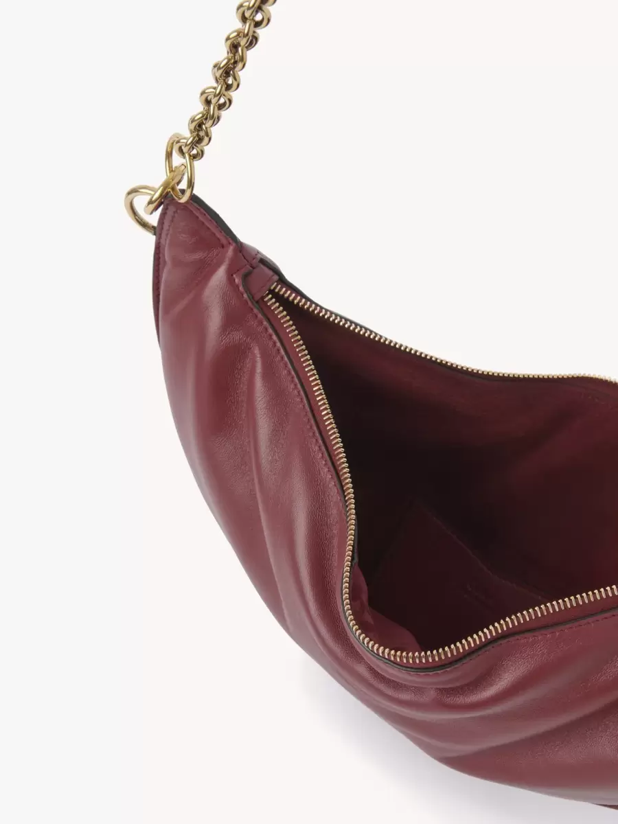 This Chloé Icons shoulder bag is crafted from smooth nappa lambskin with a rounded, padded silhouette. In a nod to the Maison’s DNA, the gold-tone chain is embellished with a Horse Medal, miniature charms and the Chloé Iconic signature.