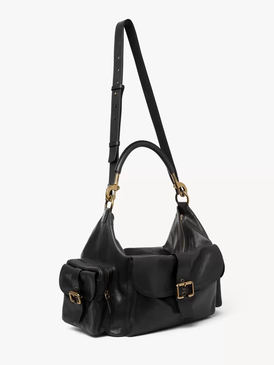 This roomy Camera bag is crafted from natural shiny buffalo leather. Its multiple pockets are embellished with revamped buckles from the iconic Paddington bag.