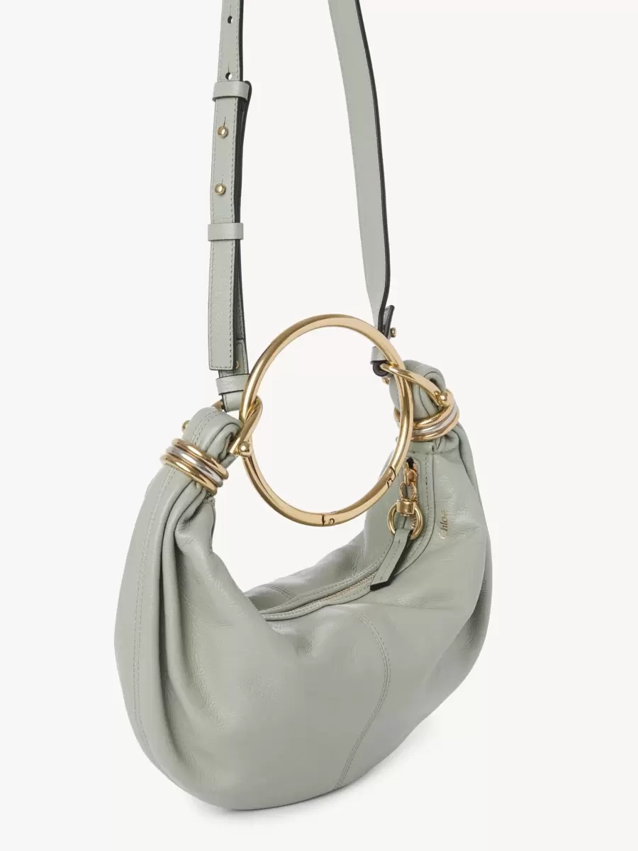 Inspired by the Maison’s Archives, this small Bracelet Hobo bag is crafted from shiny grained calfskin. The supple, rounded shape is elevated by a bracelet handle and stacked bi-color rings at the ends.