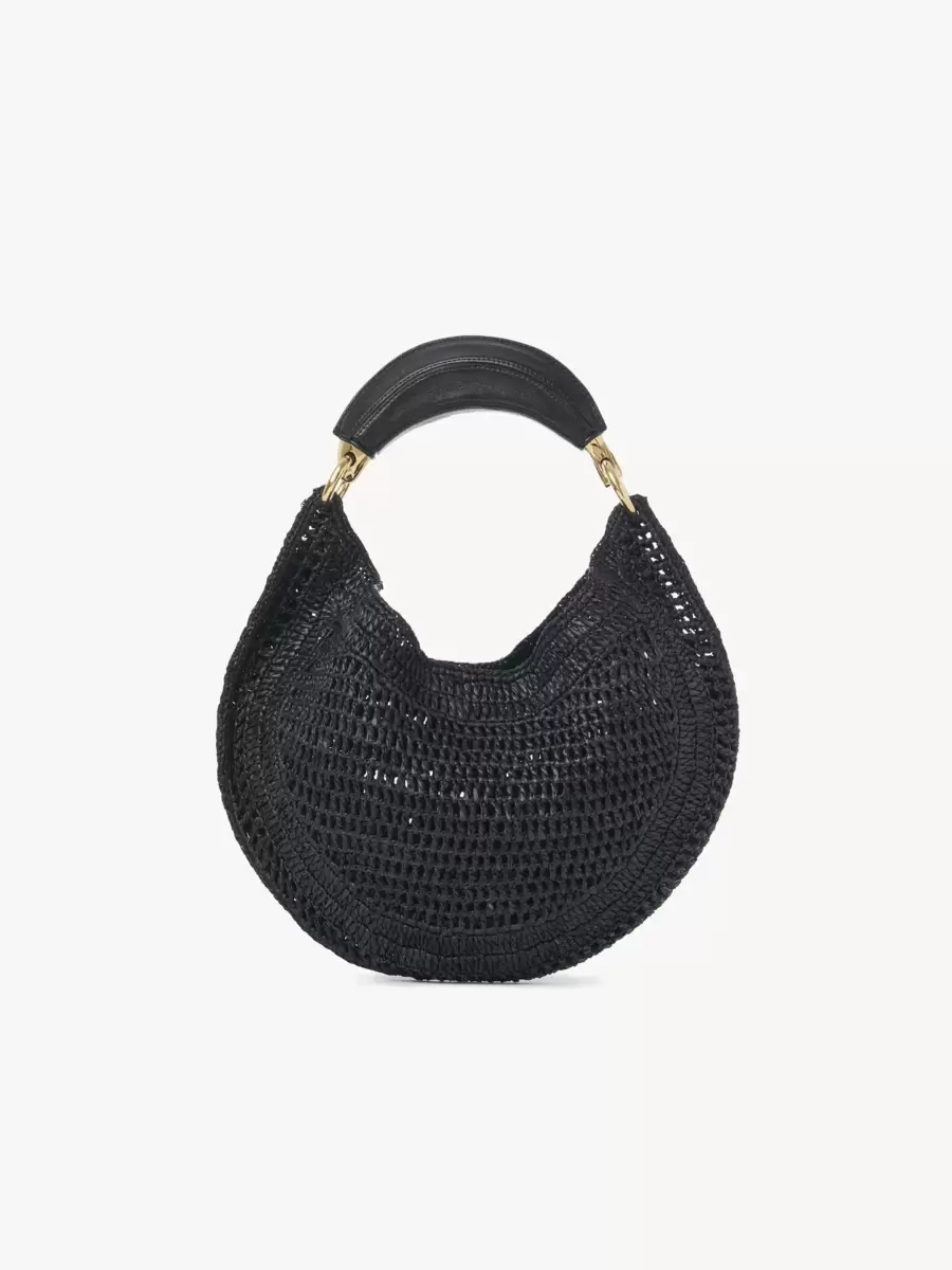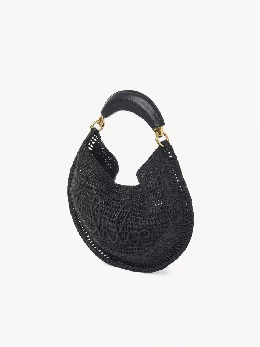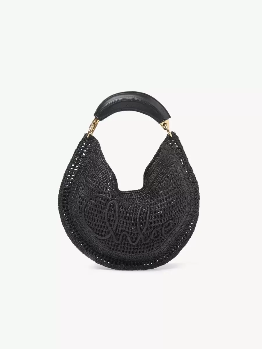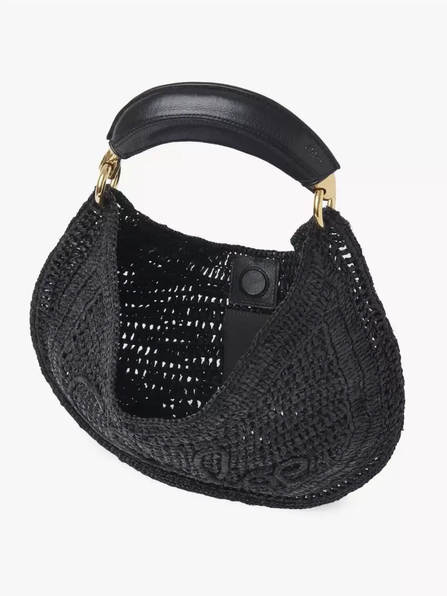 The Summer Banana hobo bag was crafted from raffia and calfskin by a single artisan over 4 days in collaboration with Made For A Woman. The curved silhouette features a banana-shaped handle and a handwritten signature inspired by the Chloé heritage.