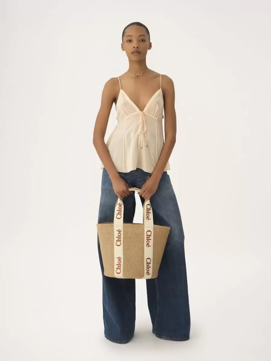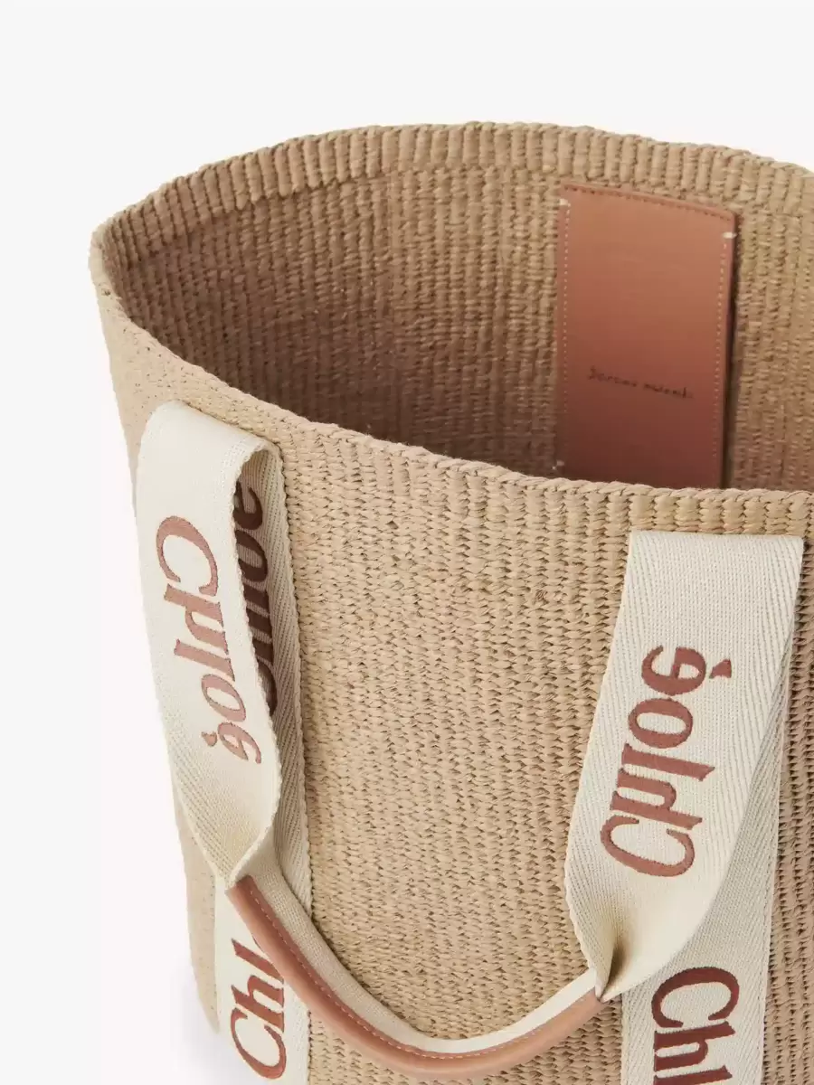 Large Woody basket bag in fair-trade paper, calfskin & polyester webbing with Chloé logo embroidery