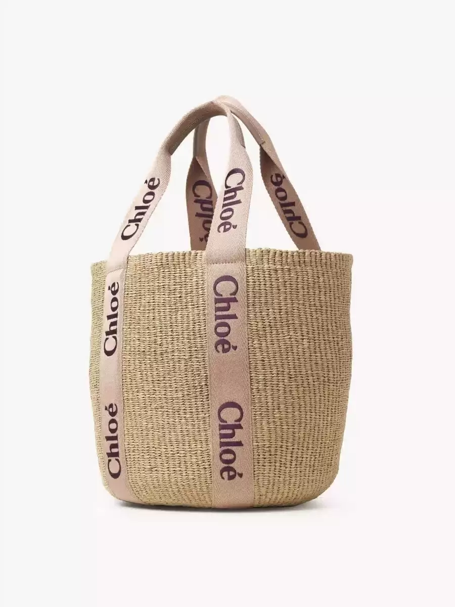 This large Woody basket bag is handwoven from fair-trade paper by independent craftswomen in Kenya. It is finished with signature canvas ribbons embroidered with the Chloé logo.