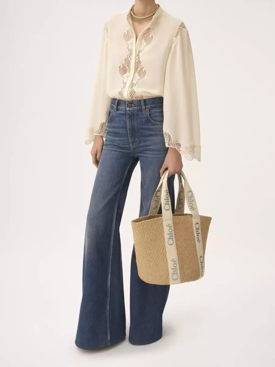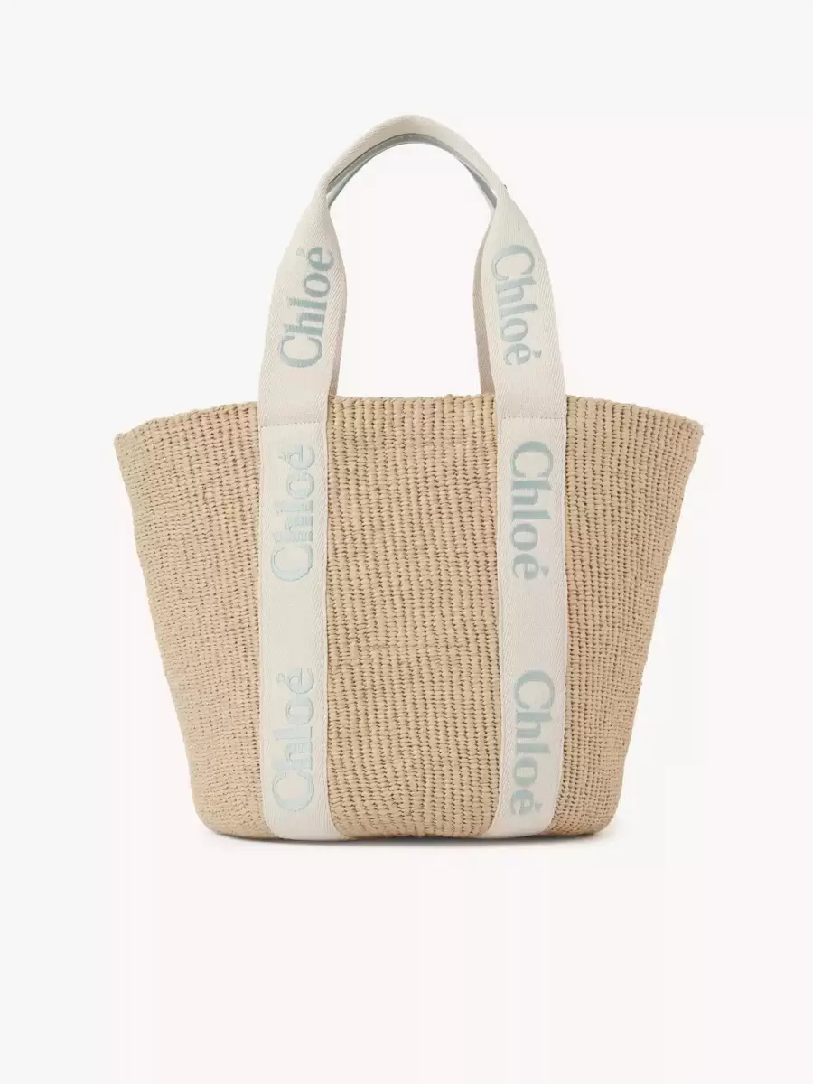 Large Woody basket bag in fair-trade paper, calfskin & polyester webbing with Chloé logo embroidery