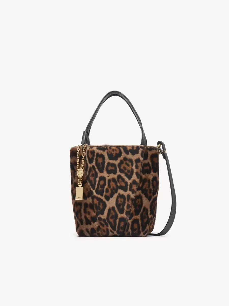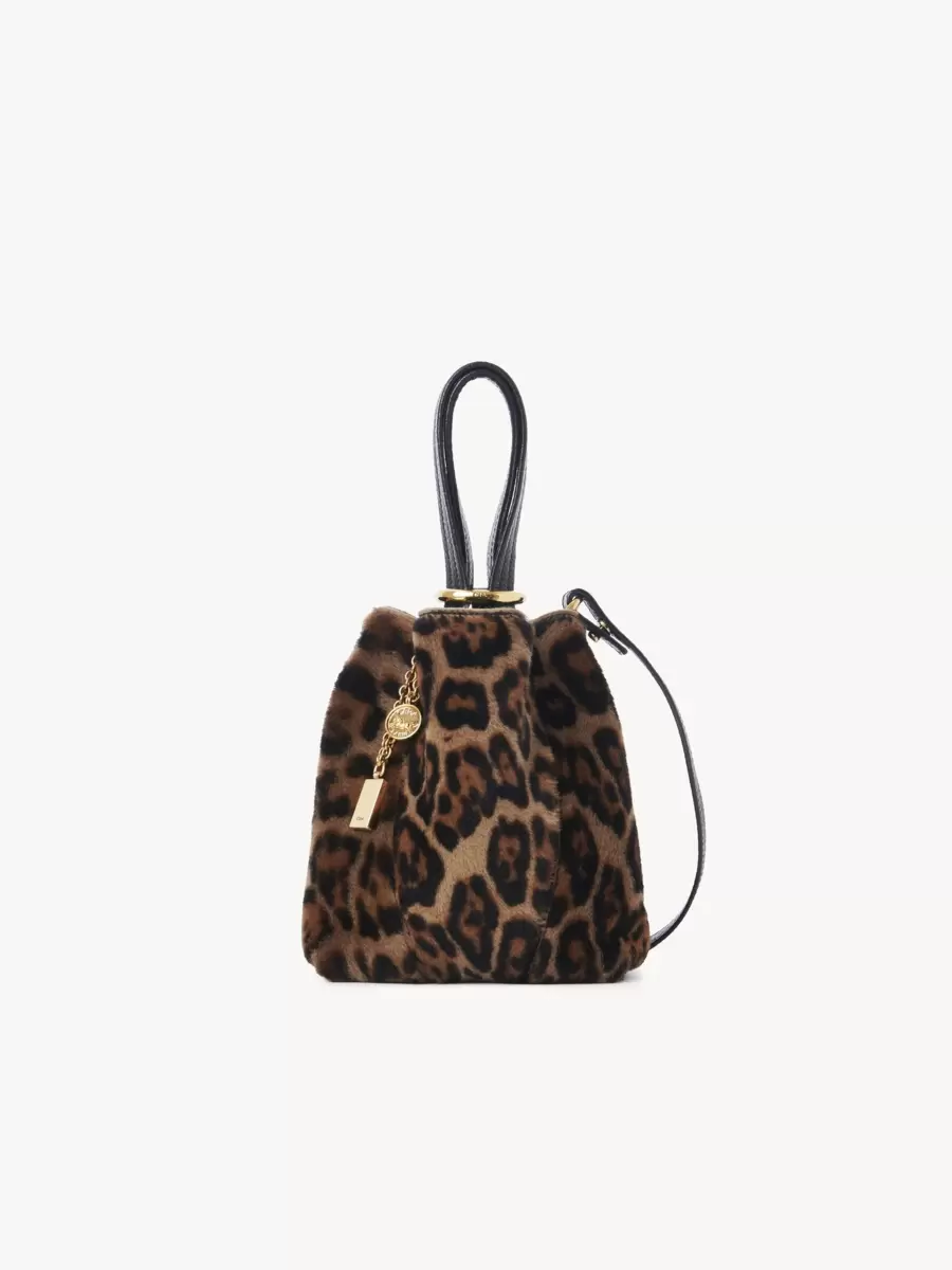 Small Chloé Spin tote bag in leopard-print shearling