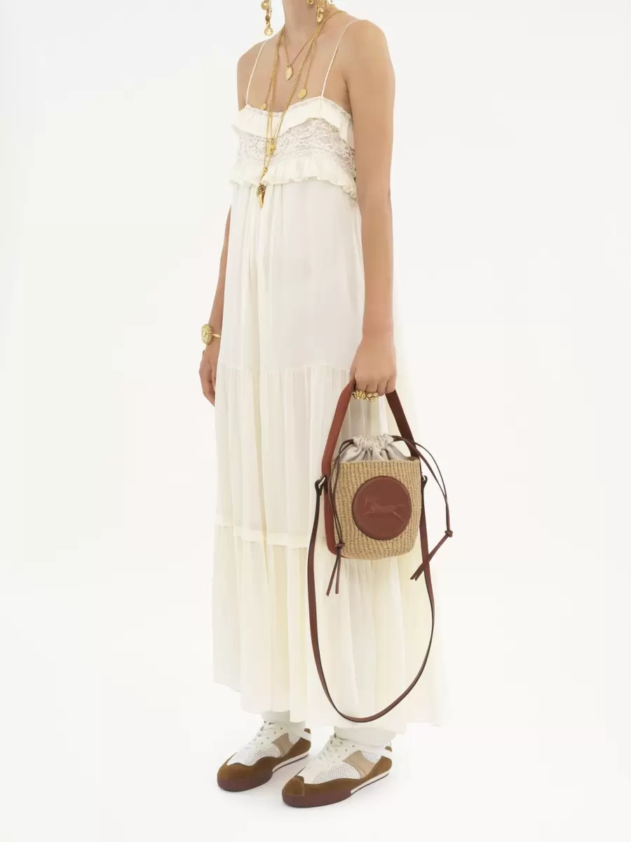 This small Horse Medal basket bag is handwoven from fair-trade paper by independent craftswomen in Kenya. The spacious, rounded compartment is finished with a signature calfskin medal, featuring the Chloe logo and an embossed image of a galloping horse.