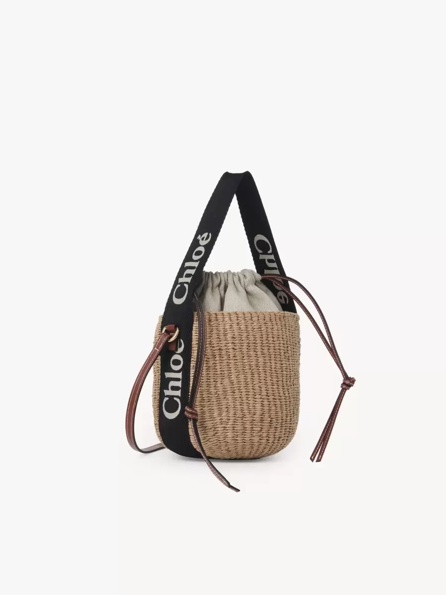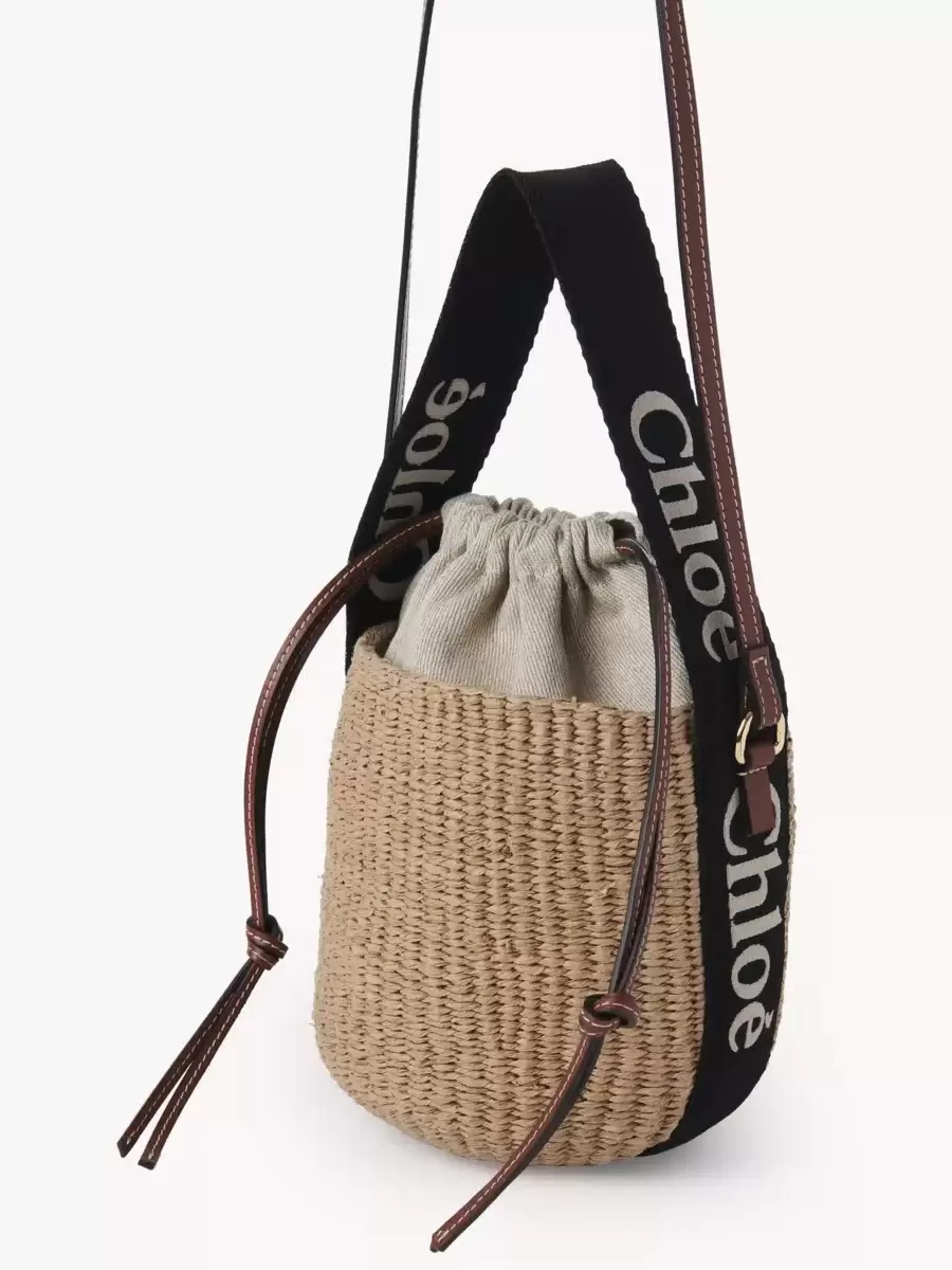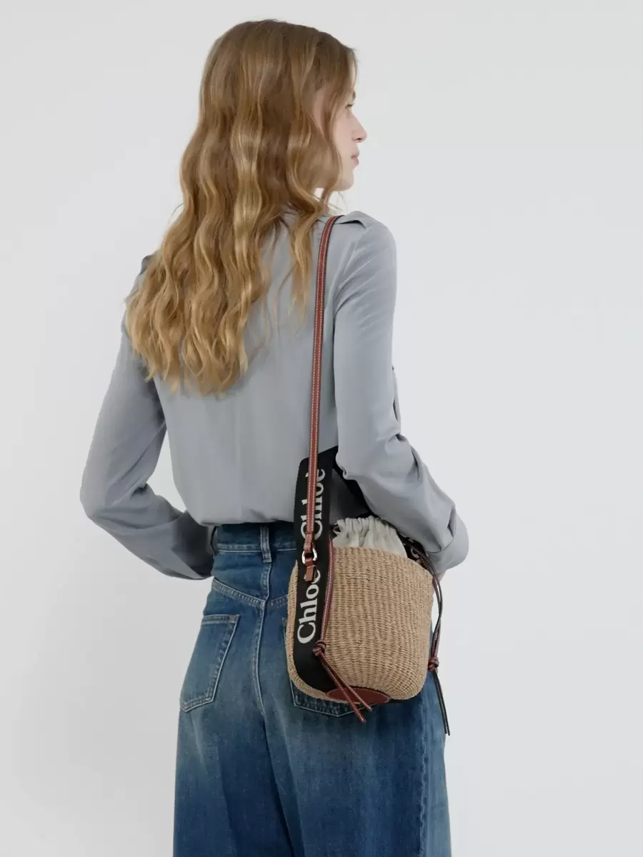 Crafted in a compact, round basket shape for an easy summer attitude, this small Woody basket is handwoven by independent craftswomen in Kenya. The line’s signature Chloé logo is embroidered on contrast webbing. The basket has a drawstring fastening and a long leather strap for shoulder and cross-body wear.
