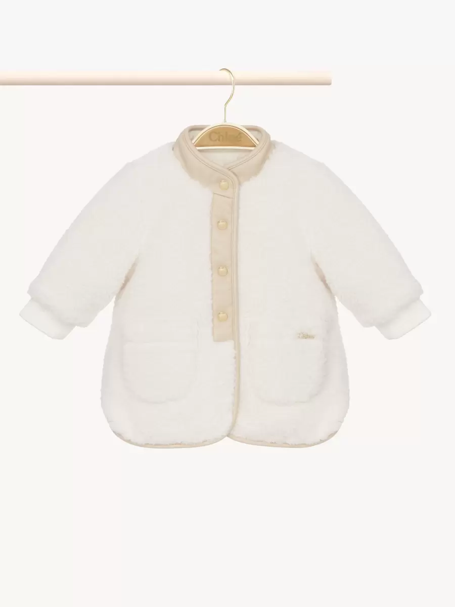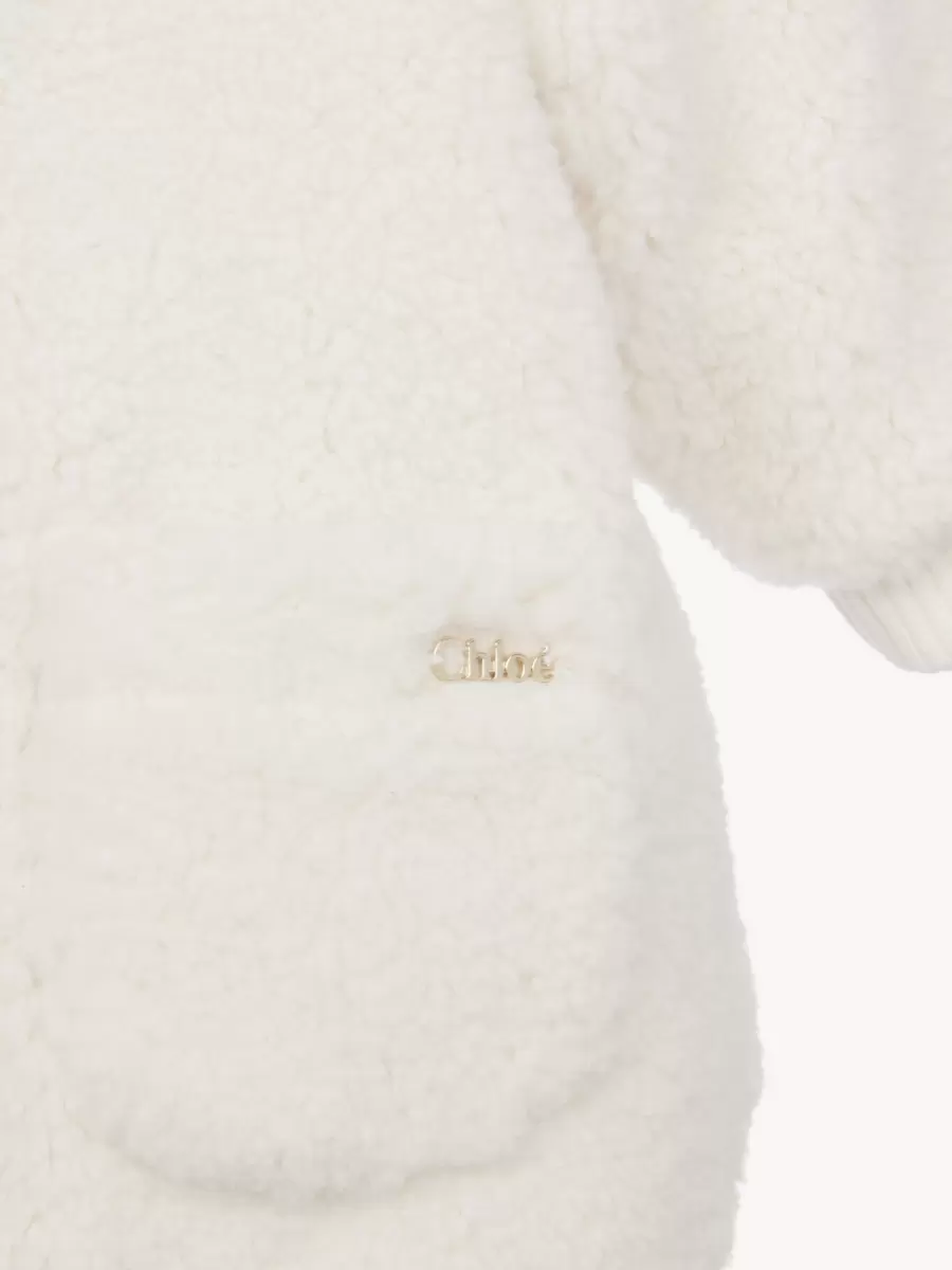 Made from shearling fleece, this warm coat features a faux leather collar and gold-tone, Chloé-engraved snap buttons. Two patch pockets, ribbed trims and a gold-tone Chloé logo plate finish this piece.