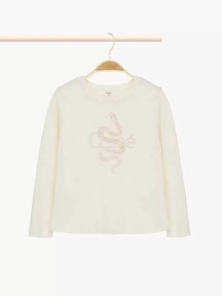 Made from organic cotton jersey, this long-sleeve top elevates a casual, round-neck silhouette with a Chloé logo and snake print at the chest.