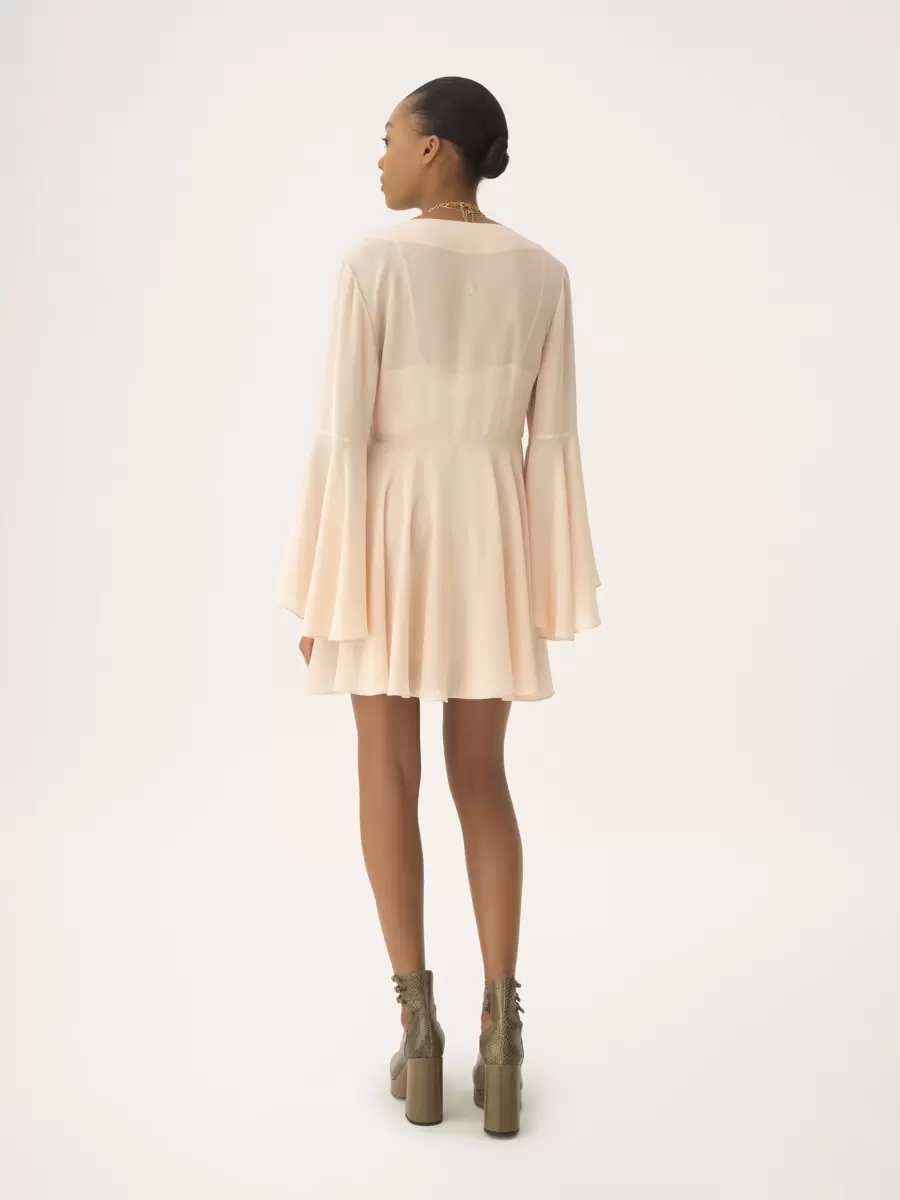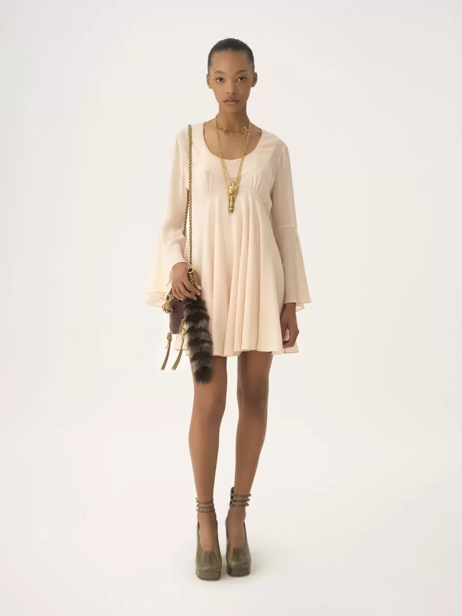 Scoop-neck flared mini dress in organic silk georgette with a silk-mix lining.