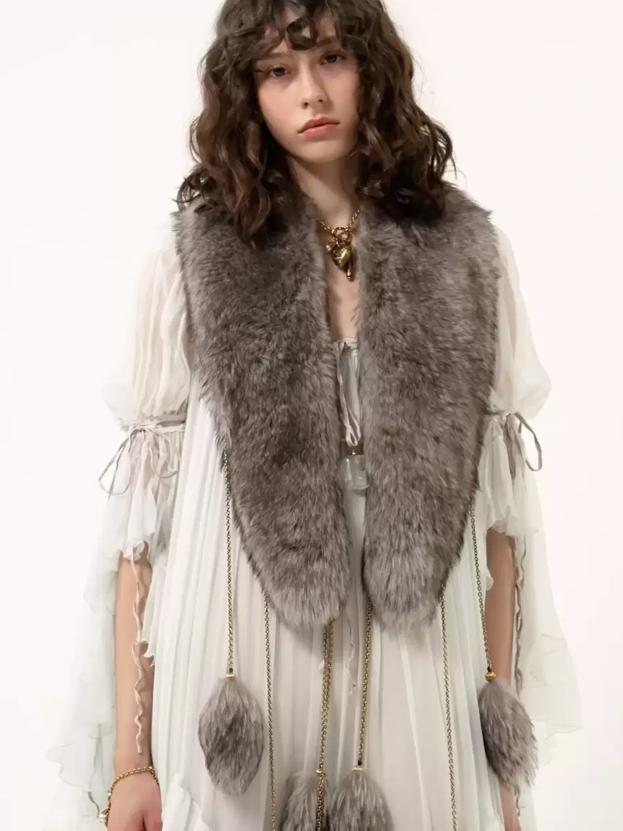 Be the first to review “Oversized long ruffled dress in silk mousseline”
