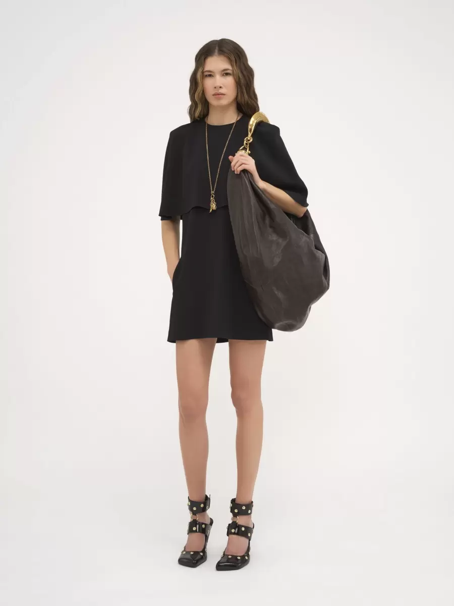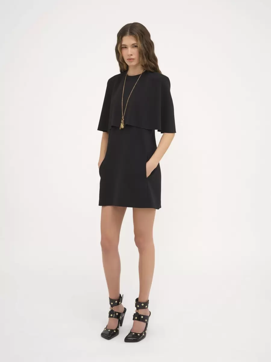 Short cape dress in a soft viscose and crêpe blend with a round neck.